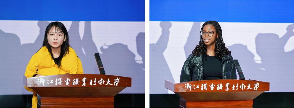2023级缅甸留学生萨舞、2025级南非留学生林福作为学生代表发言,分享在校期间的学习生活感悟,为新生送上祝福和鼓励。