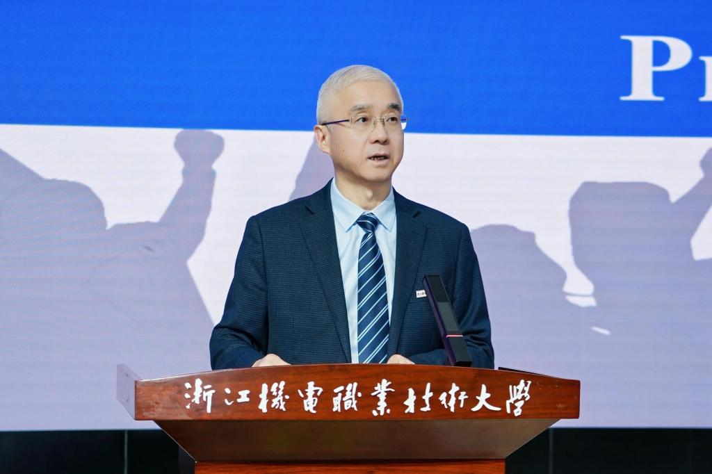 贺星岳代表学校致欢迎辞。贺星岳表示,浙江机电职业技术大学始终致力于培养“家国情怀、知识融通、技术精湛、国际视野”的复合型、创新型高端技能人才,构建了完善的课程体系与高水平的师资团队,将助力留学生深入了解行业前沿科技与实践技能,为未来职业发展奠定坚实基础。