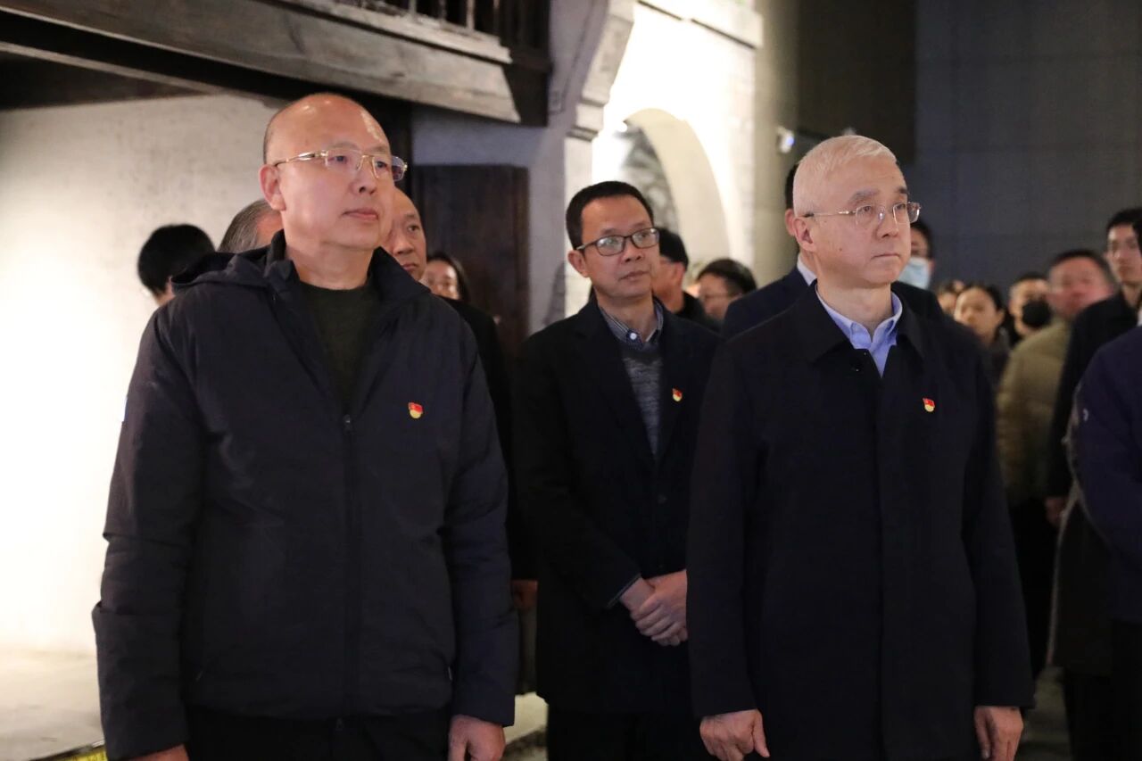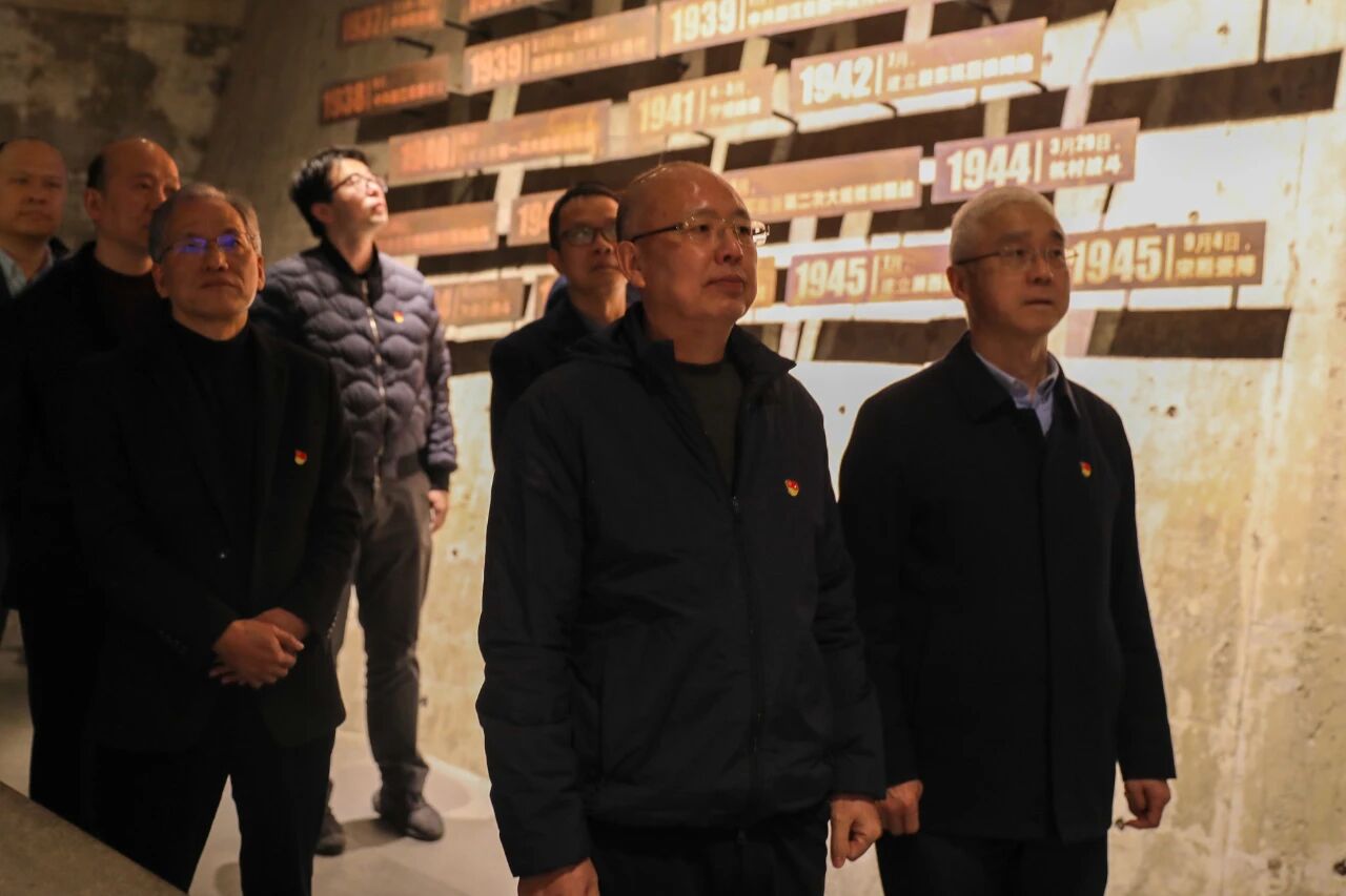党委理论学习中心组成员们在展厅内跟随讲解员引导,认真感悟,驻足良久。展厅内的珍贵历史照片、详实文献记载和生动场景复现,系统展现了从抗日战争爆发到浙江人民英勇抗争,最终迎来胜利受降的完整历程。从军民同心筑起的抗日防线,到无数先烈抛头颅洒热血的英雄事迹,每一段历史都是中华民族不屈不挠、团结御侮的重要见证。