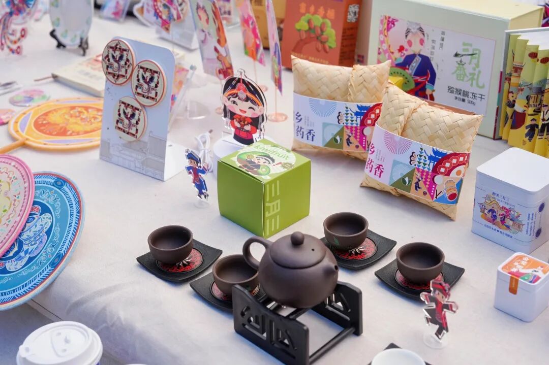 作为此次活动的重要组成部分,浙江机电职业技术大学创意设计学院精心打造的“民族乡村同心共富”设计作品展,在举村乡共富集市精彩亮相。展览集中展示了学校师生围绕民族乡村发展设计的农特产品包装、文创产品等系列成果,将专业设计与民族文化、乡村特色深度融合,助力当地文化IP打造与产业增收。