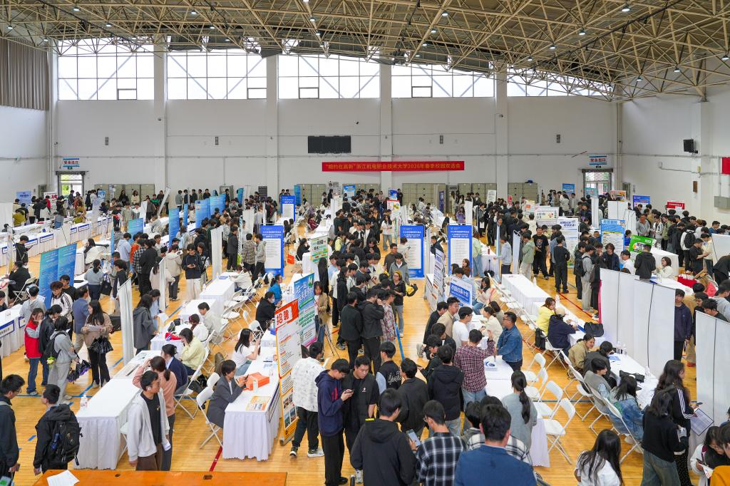 当日下午,浙江机电职业技术大学2026年校园春季双选会在校体育馆举行。本次双选会由学校联合地方人社部门精心筹备,汇聚国有企业、高新技术企业、行业龙头企业、优质校企合作单位等300余家用人单位,覆盖先进制造业、高端装备、人工智能、数字经济、现代服务业等20余个国家经济发展重点领域,累计推出优质就业岗位7000余个,岗位数量与质量均创下近年新高。
