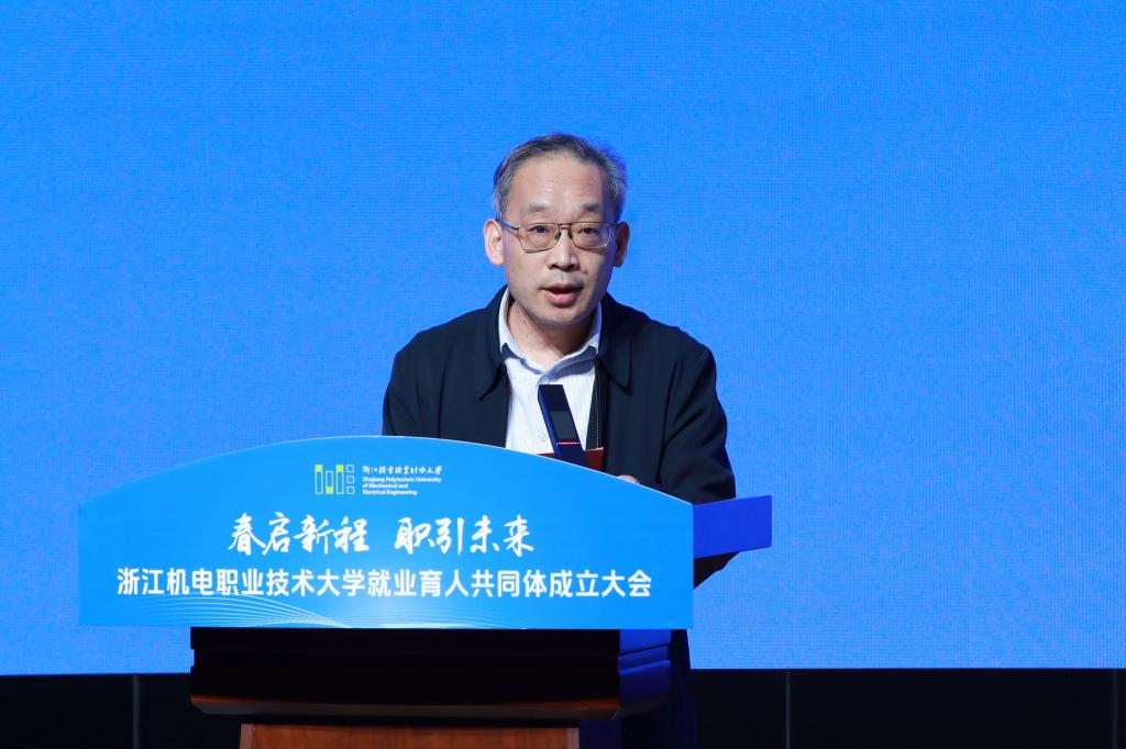 汪国辉对学校就业育人共同体成立表示祝贺。他指出,浙江机电职业技术大学牵头成立就业育人共同体是贯彻国省就业工作部署的具体实践,对于推动职业教育高质量发展、助力我省制造业强省建设、培育新质生产力具有重要意义。他强调,要坚守育人初心,锚定高质量就业根本方向,持续优化专业布局与人才培养模式;要深化协同联动,构建政校企三方共赢生态,把行业标准、企业标准、岗位标准融入教育教学全过程;要创新服务机制,打造就业育人示范标杆,充分发挥共同体的示范辐射作用。