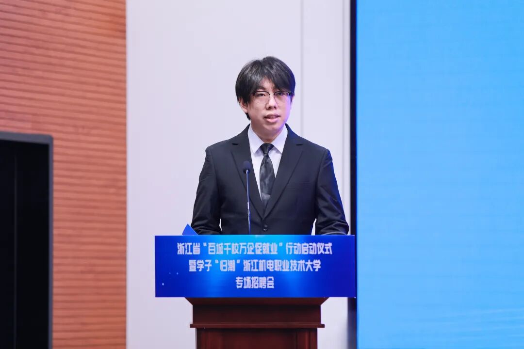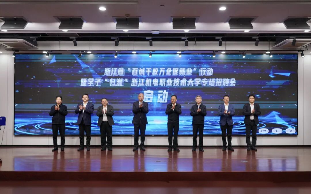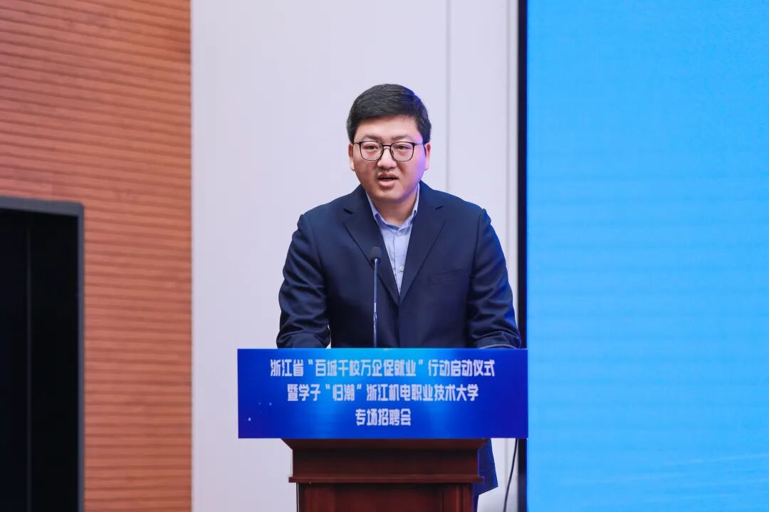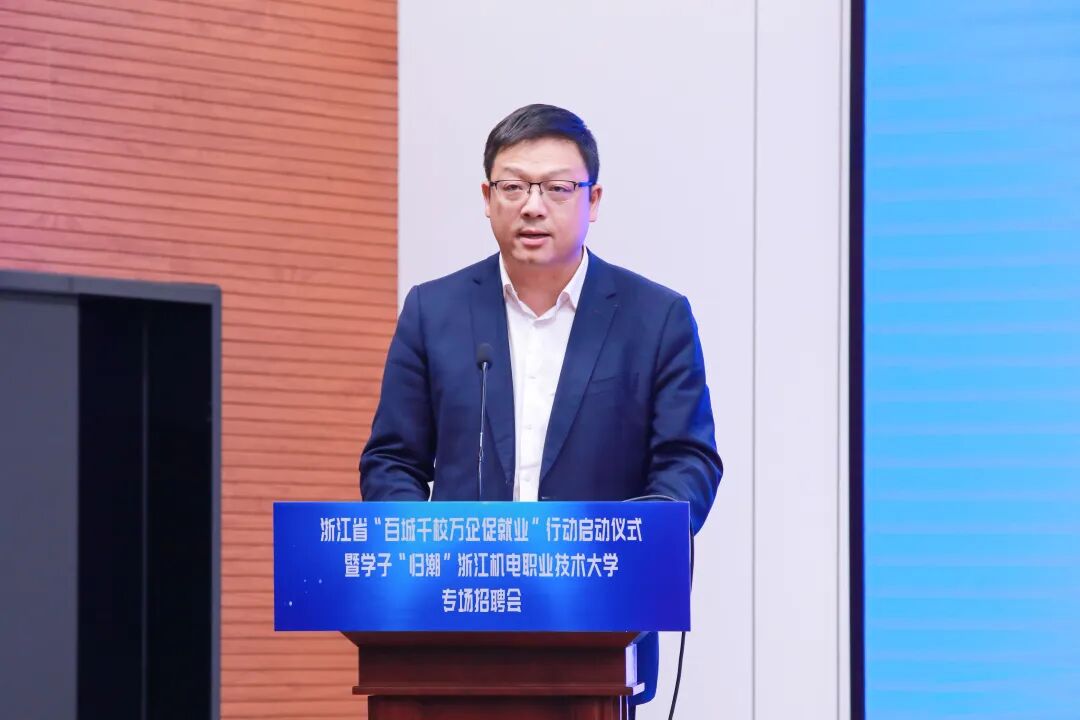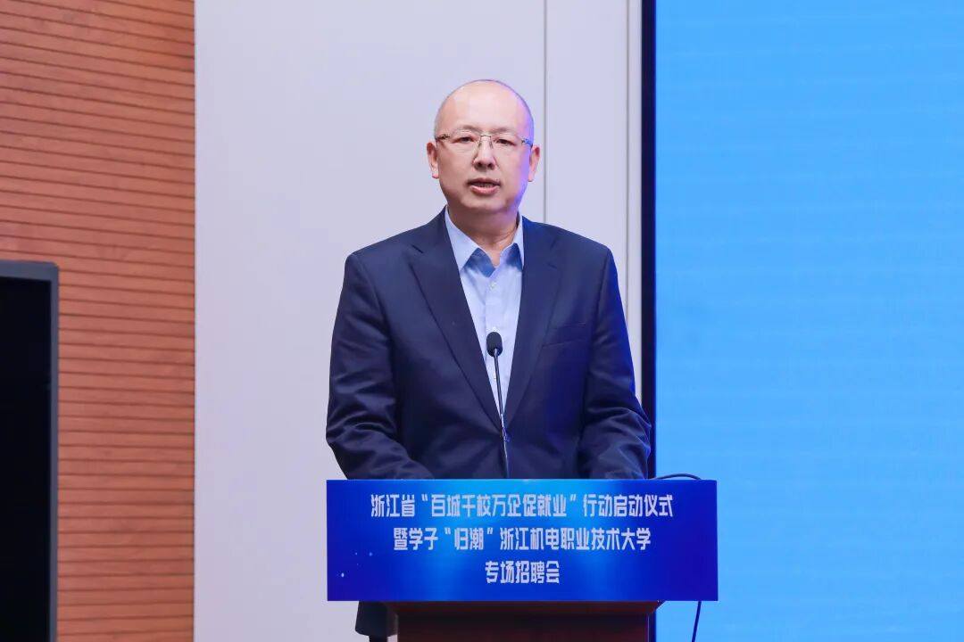 汤兆武对相关领导、来宾莅临学校表示热烈欢迎。他表示,浙江机电职业技术大学坚决贯彻落实中央、省委决策部署,始终坚守工科底色、厚植机电优势、服务制造强省,为浙江先进制造业发展提供坚实的人才支撑。结合学校发展与学子成长,他提出三点期望。一是以此次活动为纽带,共筑政校企协同就业新格局,携手打造浙江就业工作“金名片”;二是以智能制造为本色,共育服务新质生产力的时代工匠,为浙江制造业转型升级注入青春动能;三是以“归潮”行动为契机,共赴高质量就业创业新征程,推动青春理想融入国家发展和区域建设。