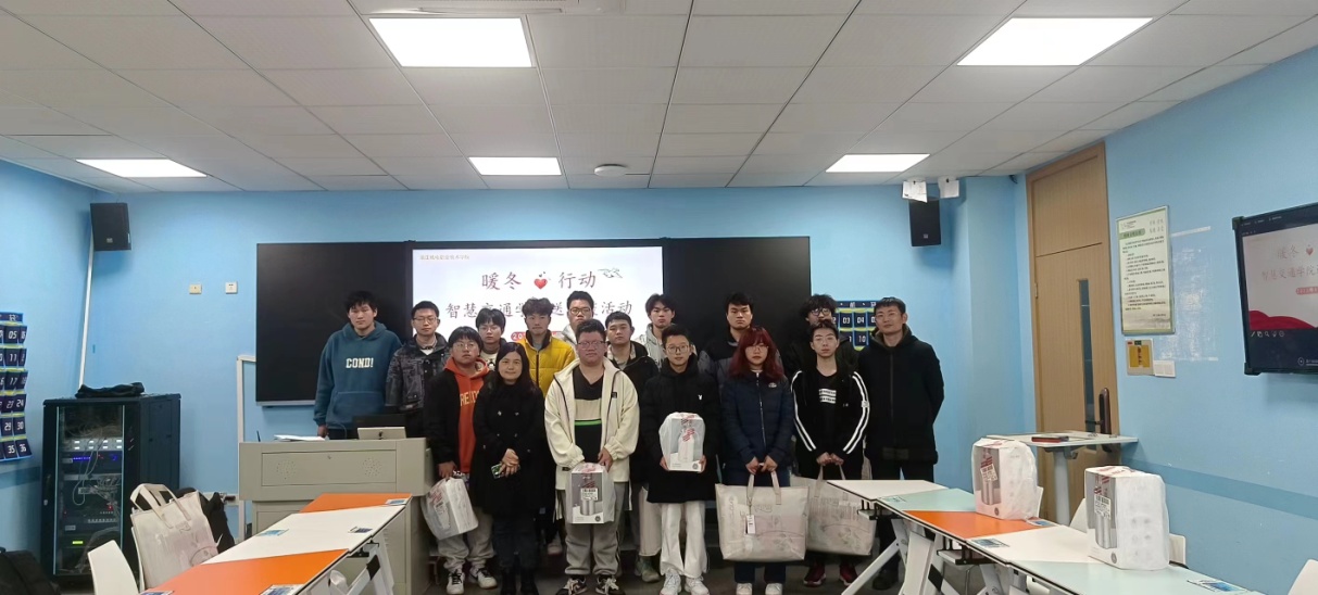 冬至已至,凛冬降临。在这个充满寒意的时节,为加强人文关怀,12月27日,智慧交通学院在4号楼202教室组织开展“寒冬添温度 关怀暖人心”冬日送温暖活动,为家庭经济困难学生代表发放冬季保暖毛毯和保温水壶,学院学工办主任姚婷、辅导员周传超以及家庭困难学生代表参与活动。
