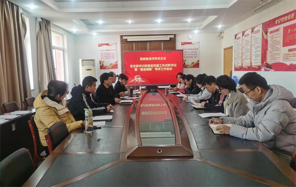 为深入学习贯彻习近平新时代中国特色社会主义思想,贯彻落实新时代党的建设和党的组织路线总要求,坚持和完善党对高校的全面领导,推动全面从严治党向纵深发展、向基层延伸,压紧压实支部书记抓党建的政治责任,根据学校《关于做好2023年度党支部书记抓基层党建工作述职评议暨党支部堡垒指数考评工作的通知》文件要求,1月5日,智能制造学院党总支召开党支部书记抓基层党建述职评议暨党支部“堡垒指数”考评会。