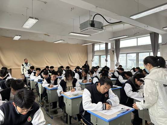 此次考试为期1天,巡考教师认真履行巡考职责、做好巡查监督,考场监考教师认真履行监考职责,考生严格遵守考场纪律、全神贯注、认真作答,整个考场安静严肃、并然有序。