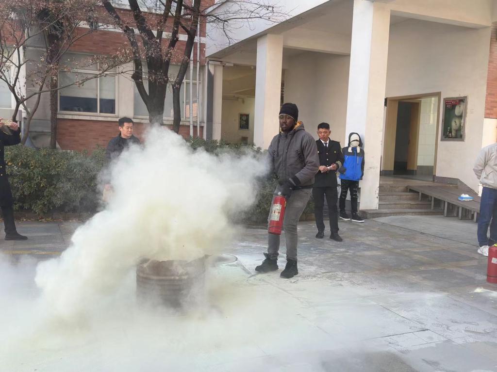 为加强寒假留校留学生安全教育,强化留学生安全防范意识,1月24日下午,国际教育学院联合校保卫处开展了消防应急演练活动,全体留学生参加。