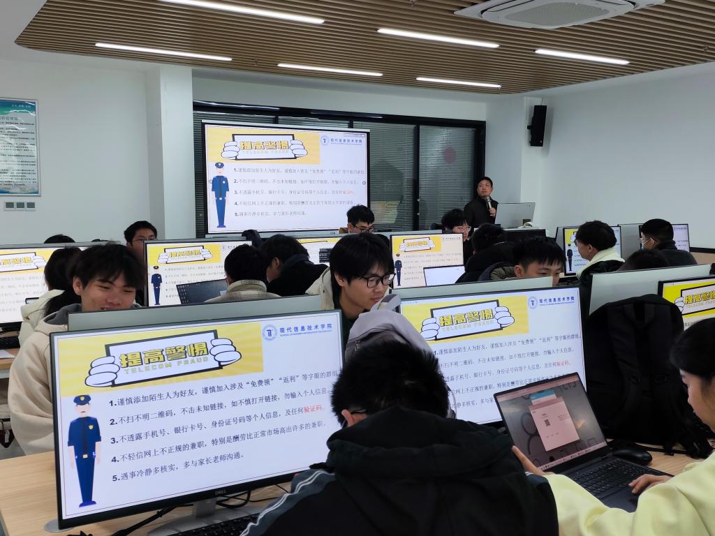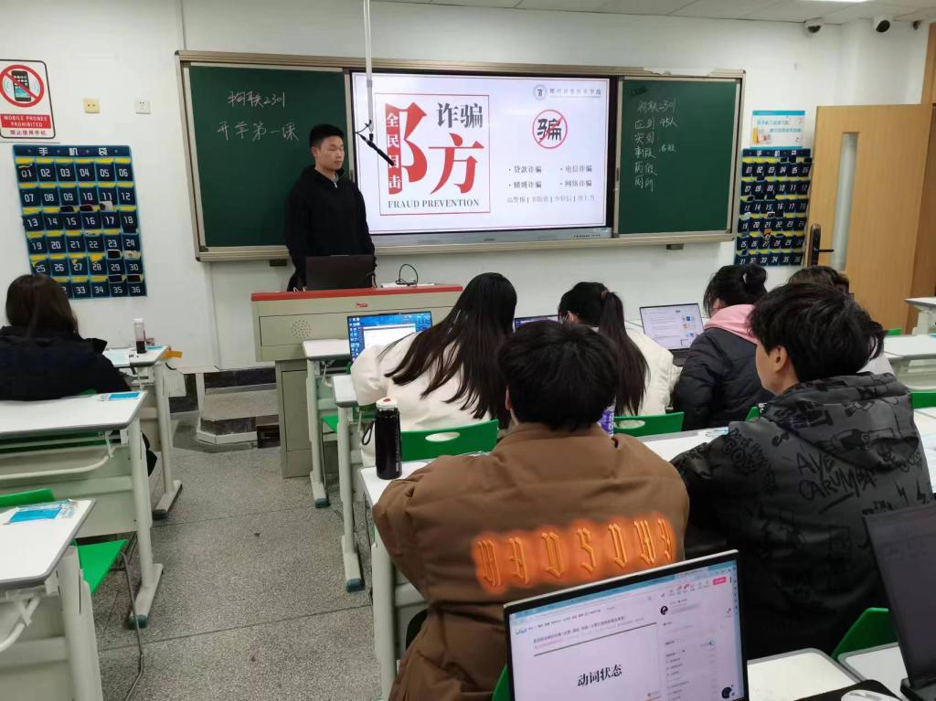 在课堂上,老师为同学们讲述目前常见的诈骗手段,让同学们牢记“5不”。强调在日常生活和学习中保护个人信息的重要性,并通过反诈教育、禁毒教育、反赌教育、抵制网贷教育、消防安全提醒等5大专题,筑牢同学们的安全思想意识。