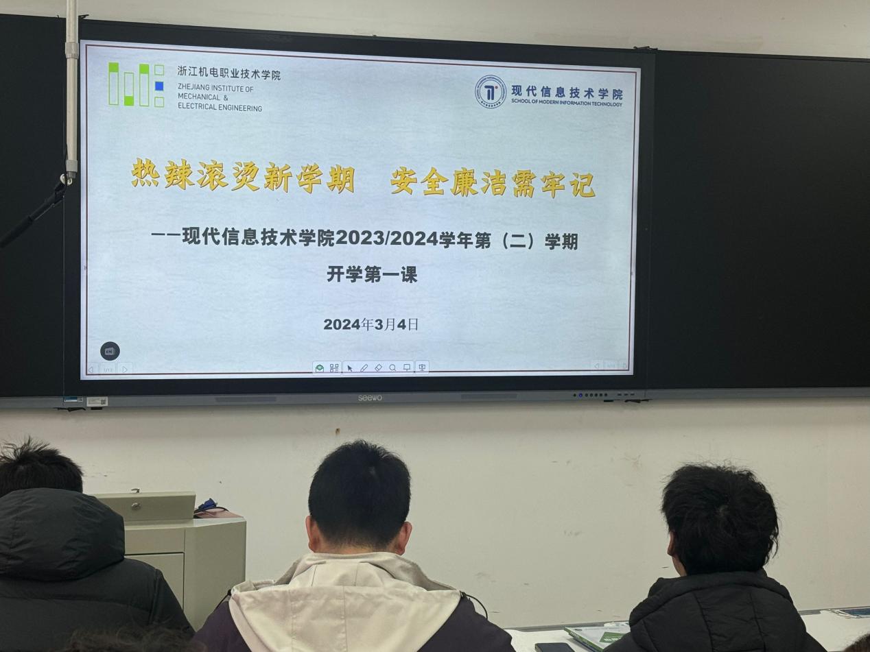 3月4日开学第一天,现代信息技术学院组织各班开展2023/2024学年第(二)学期开学第一课,引导同学们坚定理想信念、锚定奋斗目标,增强校园安全廉洁意识,为新学期蓄力赋能。