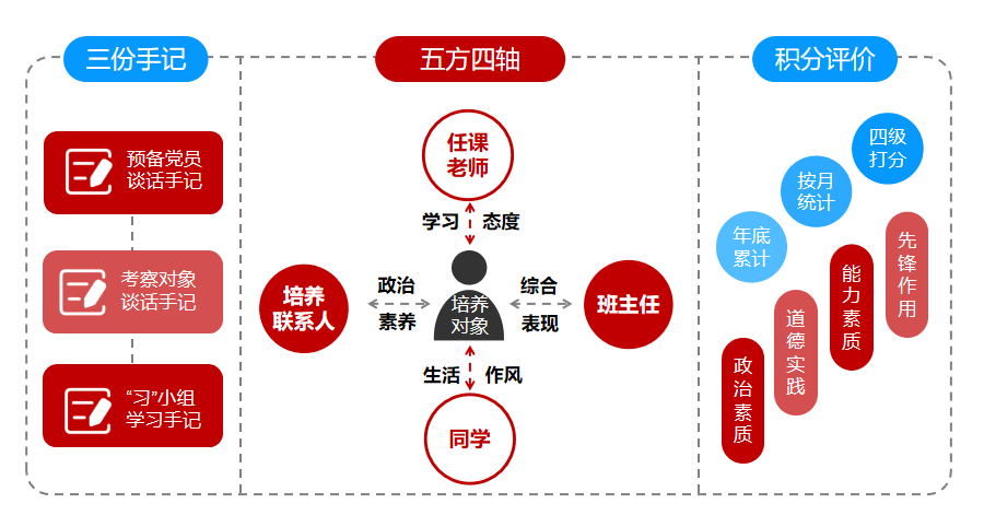 目前,物联云计算学生党支部在学校党委领导下已高质量完成浙江省第二批“高校党建样板支部”建设验收。在党员发展和党建工作模式上亮点突出,党支部以学院党总支资源为载体,构建了“红色系列”党建工作模式,创建了一个“红色核心”阵地,打造了一支“红色导师”团队,探索了N门“红色课程”成果;开创了高质量党员发展“积分制”+“345”工作模式,实施党员发展积分制、落实“三个手记”、构建“五方四轴”党员培养体系,“三个手记,三份坚持”入选全国高校“两学一做”支部风采展示活动。