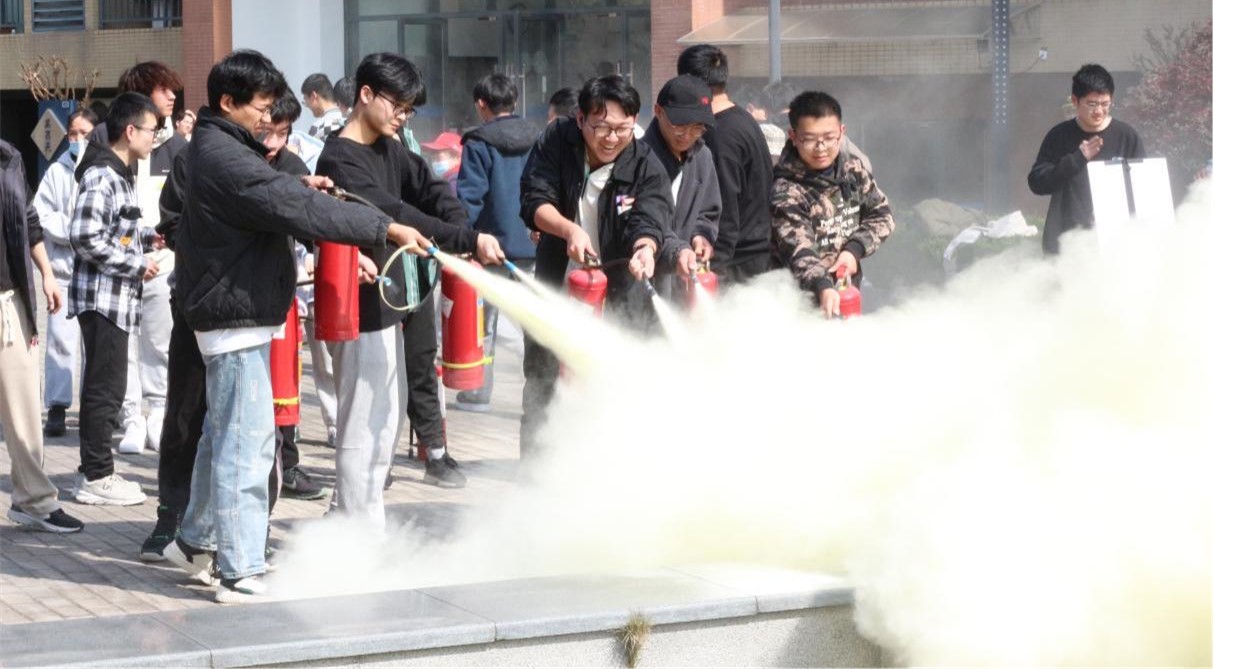 为了让师生们更直观地了解灭火操作,现场还进行了灭火器实地演练。现场师生积极参与,亲自体验了使用灭火器扑灭模拟火灾的过程。