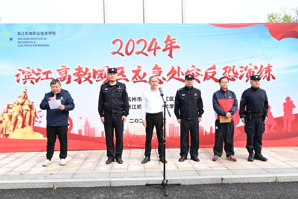 2024年4月2日,浙江机电职业技术学院南大门口“上演”了一起驾车闯校门后持斧砍人的“戏码”。这是一场由杭州市公安局滨江区分局主办,我校承办的紧张而又富有成效的应急处突反恐演练。本次参加演练的有来自浙江机电职业技术学院、浙江警察学院、浙江中医药大学等10支安全保卫队伍。浙江机电职业技术学院党委副书记周增逵、基层基础管理大队教导员陈观忠、巡特警大队二中队中队长方飞鑫、浦沿派出所副所长陈斌、省教育发展中心滨江后勤部副主任陶仕清等领导嘉宾现场观摩。