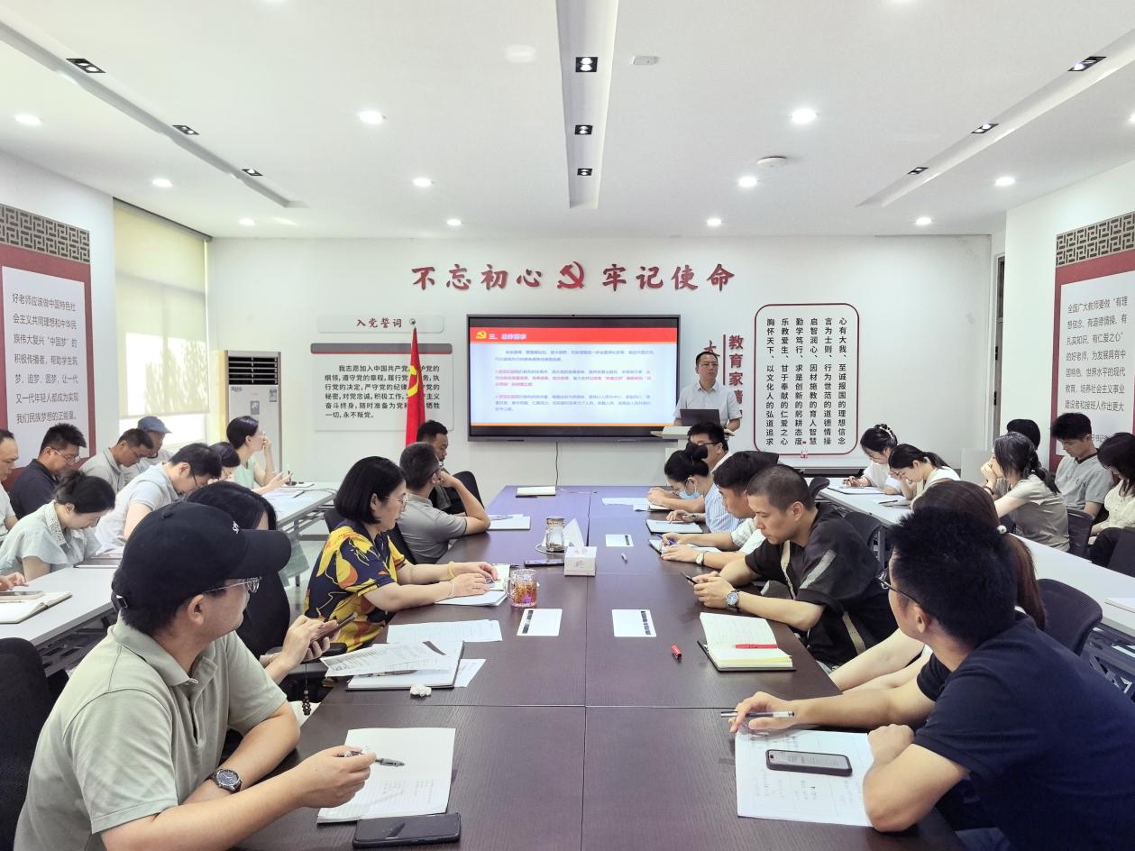 符强书记带领全体教师专题学习了浙江省委十五届五次全会精神,并结合学院工作实际,全面解读了《中共中央国务院关于弘扬教育家精神加强新时代高素质专业化教师队伍建设的意见》。他强调,要全面贯彻党的二十届三中全会精神和习近平总书记在会上的重要部署,认真学习省委十五届五次全会精神,把准政策导向,抢抓发展机遇,扎实开展党纪学习教育,深化改革开放,加快推进高水平职业技术大学建设。