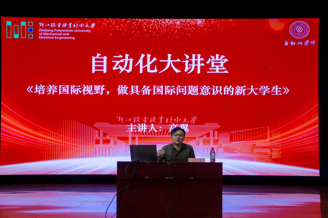 为促进学院师生适应日益开放的国际化趋势,增进国际化视野,9月15日晚,自动化学院在海宁校区小剧场举办了第五期“自动化大讲堂”,邀请到上海第二工业大学外语与文化传播学院高翼老师作主题为“培养国际视野,做具备国际问题意识的新大学生”的讲座。学院副院长王耀军出席讲座,学院辅导员、班主任、团学干部及2024级全体新生共同参加,讲座由学工办主任孟进主持。