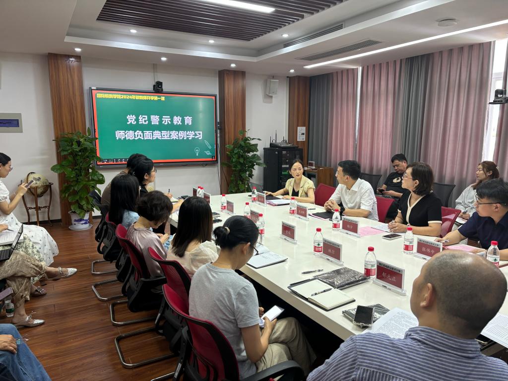 9月11日下午,国际教育学院开展以“弘扬教育家精神,做新时代好教师”为主题的教职工警示教育大会,旨在进一步加强教师队伍的职业道德建设,强化教师的责任意识和育人使命。副校长朱润晔出席会议、学院党总支书记高水琴、院长陶宇、全体教职工参加会议。