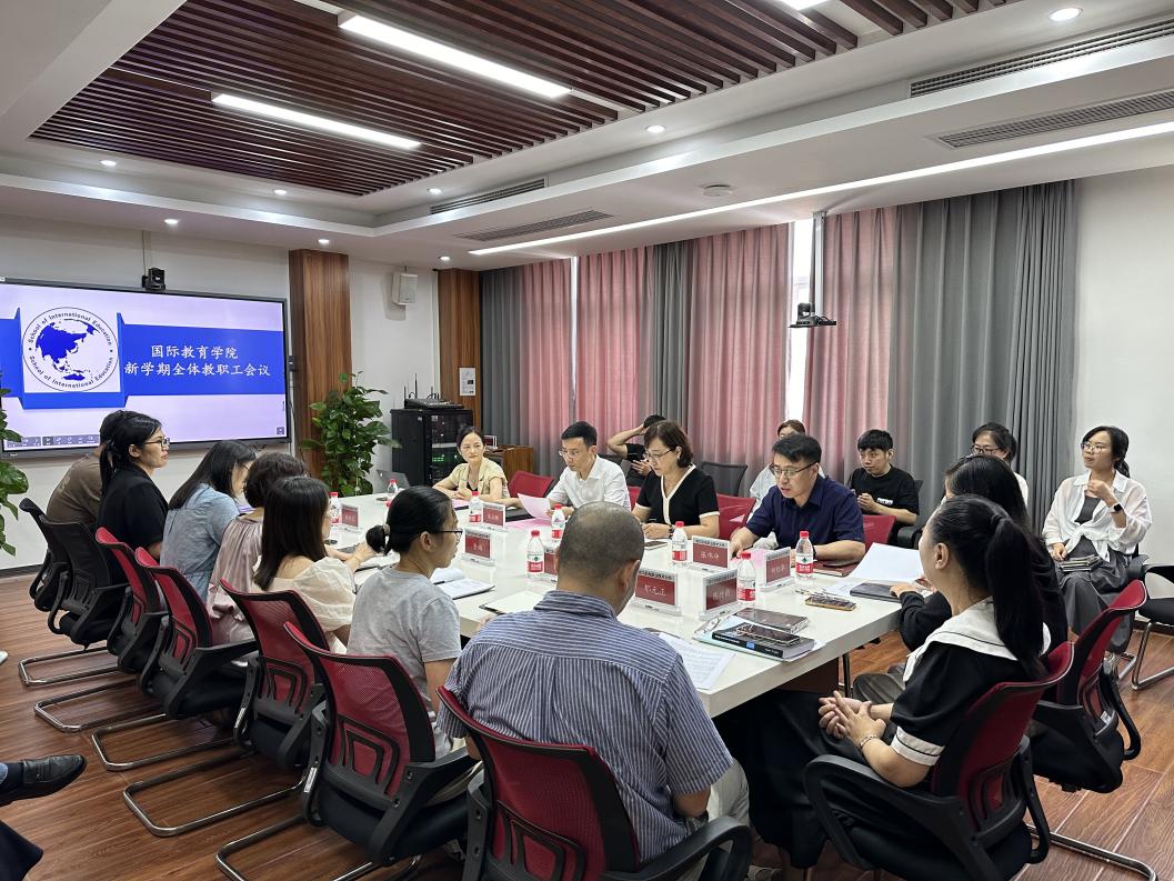 为贯彻落实学校2024年工作会议精神,进一步统一思想、振奋精神、激发动力,加快纵深推进学院发展的步伐,9月11日下午,国际教育学院召开新学期全体教职工大会。副校长朱润晔出席会议,学院领导班子成员和全体教职工参加了会议,会议由张伟中副院长主持。