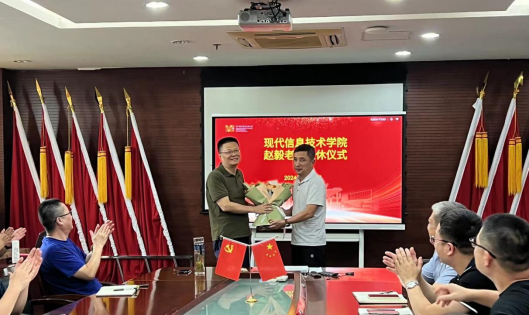 9月26日,秋风送爽,现代信息技术学院综合楼803内暖意融融,一场温馨而庄重的荣休仪式在此举行,共同见证并庆祝赵毅老师光荣退休的重要时刻。仪式由学院分工会主席章国赞主持,全院教职工齐聚一堂,共同回顾赵老师的教育生涯,致敬他的辛勤耕耘与无私奉献。