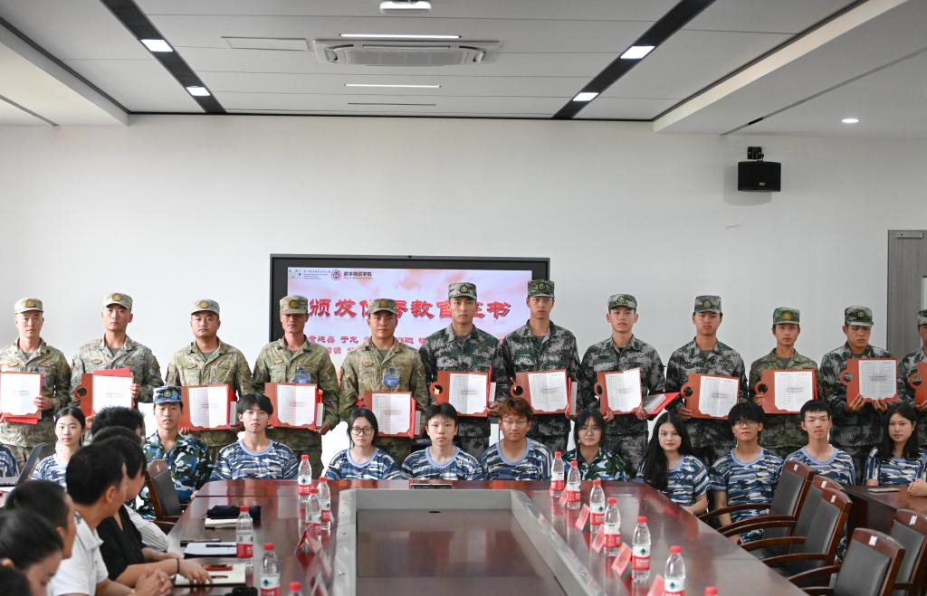 会上,学院领导为全体优秀军训教官进行颁奖以表彰他们的辛勤付出与卓越贡献,学生代表为教官们送上感谢信表达最诚挚的感谢。