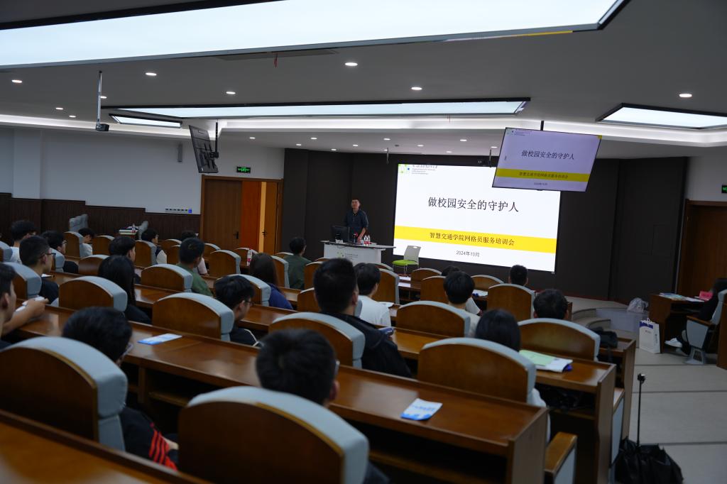 10月15日,在5号楼5号报告厅,智慧交通学院组织开展了学生安全网格员服务培训会,此次活动旨在提升大学生的安全防范意识,增强网格化服务能力,共同守护平安校园。