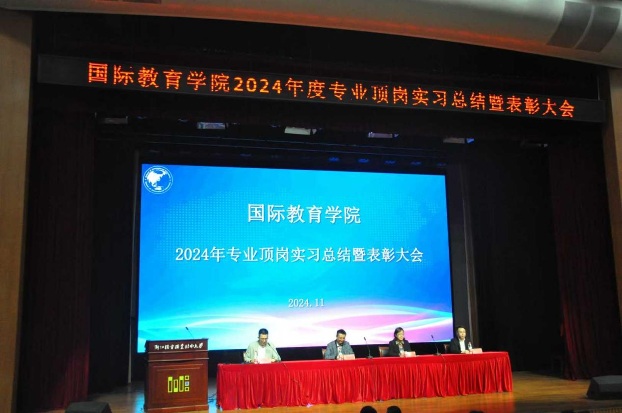 10月22日,国际教育学院在五号楼报告厅隆重召开2024年专业顶岗实习总结暨表彰大会。出席本次大会的有国际教育学院院长陶宇、副院长张伟中、各教研室顶岗实习指导教师,2022级全体学生以及2023级学生代表参加,会议由国际教育学院合作办主任周昂锐主持。
