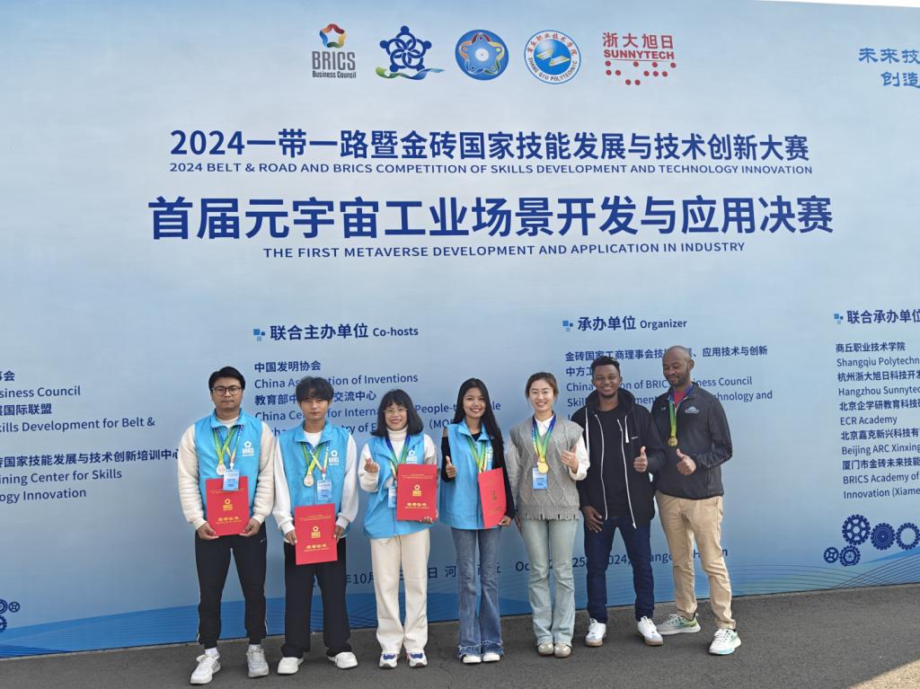 在日前结束的“2024一带一路暨金砖国家技能发展与技术创新大赛之首届元宇宙工业场景开发与应用赛项决赛”中,国际教育学院坦桑尼亚籍留学生Maturo Apollo Godwin(阿波罗)和肯尼亚籍留学生Kinyua David Karobia(大卫),在方案设计、工业逻辑设计与制作、元宇宙功能开发等多项任务中表现优秀,脱颖而出,获得外籍组一等奖(金牌)!