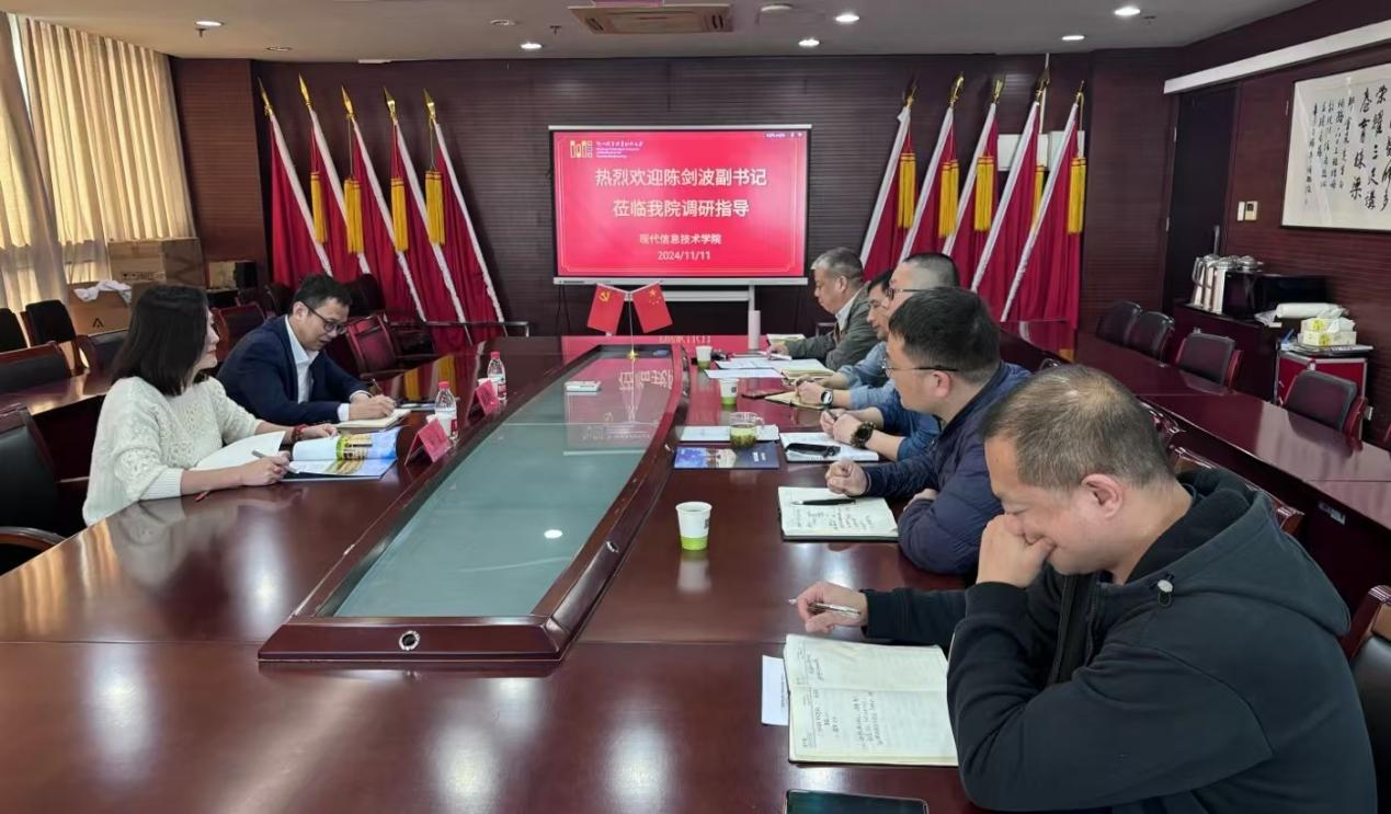 11月11日下午,学校党委副书记陈剑波,学工部部长王汇赴现代信息技术学院调研指导人才培养与学生管理工作。现代信息技术学院领导班子,办公室、学工办等相关人员参加调研。