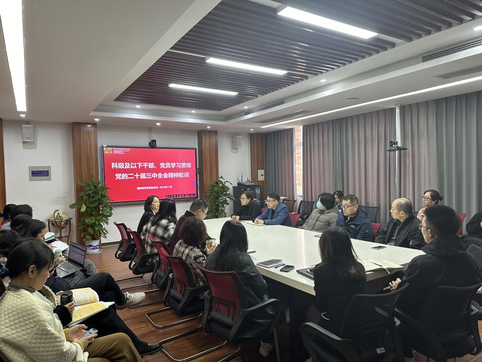 为深入贯彻落实党的二十届三中全会精神,进一步提升党员干部的政治素养和理论水平,学院党总支书记高水琴作开班动员,全体科级及以下干部、党员参加轮训。