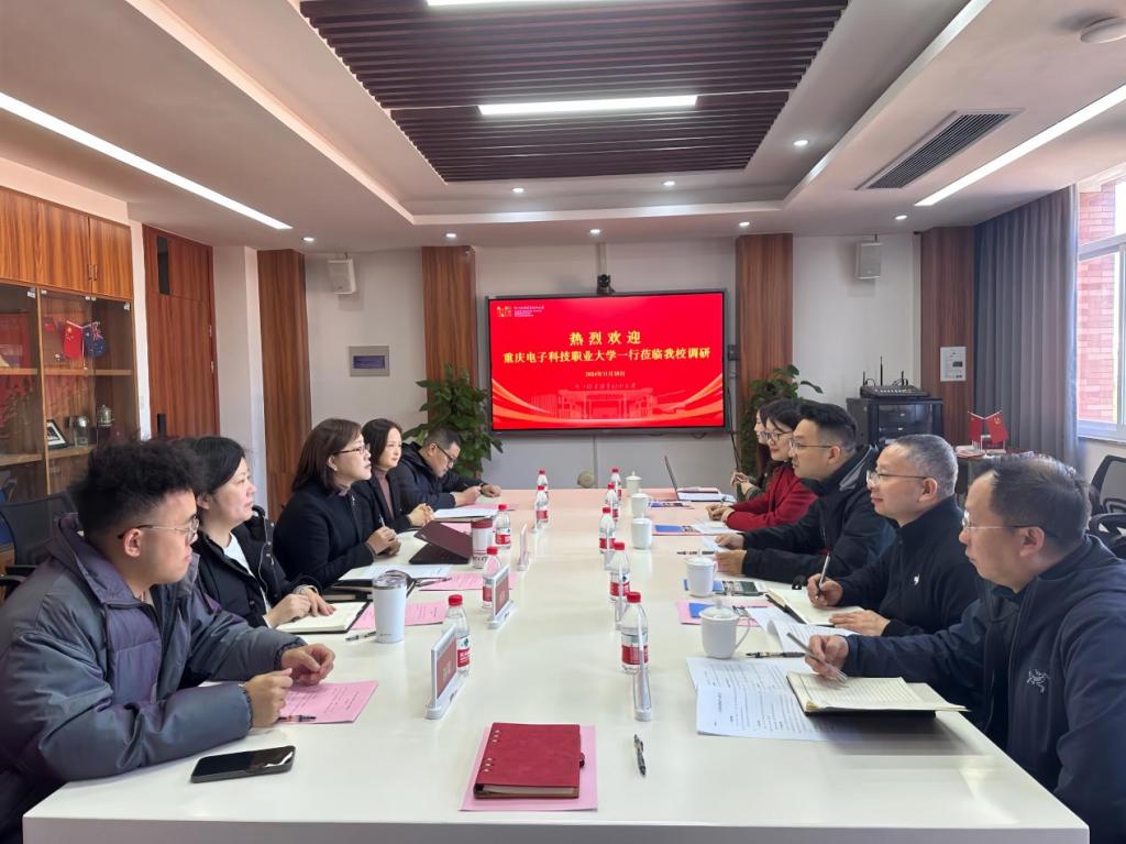 11月28日,重庆电子科技职业大学国际交流与合作发展处处长刘宏宇、教务处副处长陈进、通识教育与国际学院副院长张华敏等一行5人来我校调研交流。国际教育学院院长陶宇、党总支书记高水琴及相关科室负责人参加了座谈交流,座谈会由陶宇院长主持。