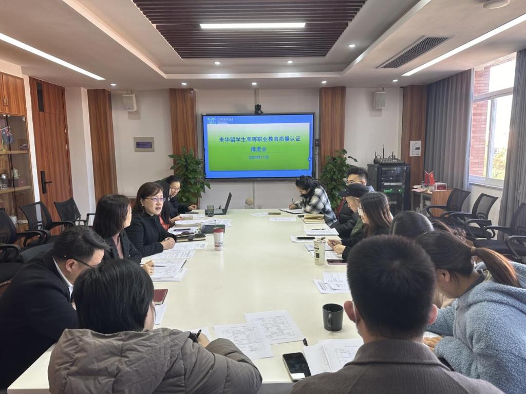 11月24日,学校召开来华留学生高等职业教育质量认证自评材料组推进会,国际教育学院院长陶宇、党总支书记高水琴、副院长张伟中、各办公室和教研室主任等参加会议,会议由陶宇主持。