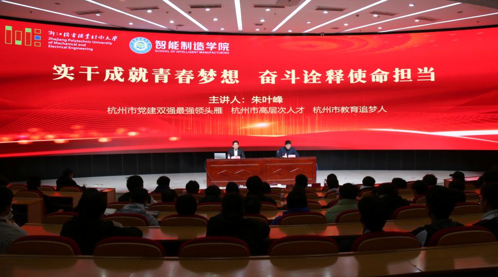 为深入学习贯彻党的二十届三中全会精神,坚定青年学生强国复兴的理想信念,不忘初心,砥砺前行,11月28日,智能制造学院特邀杭州市党建双强最强领头雁、杭州市高层次人才、杭州市教育追梦人朱叶峰书记为学生党员、入党积极分子讲党课。学院各学生党支部书记、80余名学生党员、入党积极分子参加活动,讲座由党总支书记楼建忠主持。