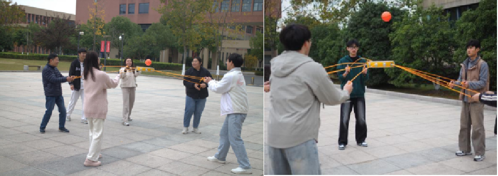 “千里珠行”是一场融合速度与敏捷的竞赛。队员们手持管道,通过接力的方式将小球从起点运送到终点。不仅展现了出色的手眼协调能力,更以默契的配合彰显了团队合作的力量。