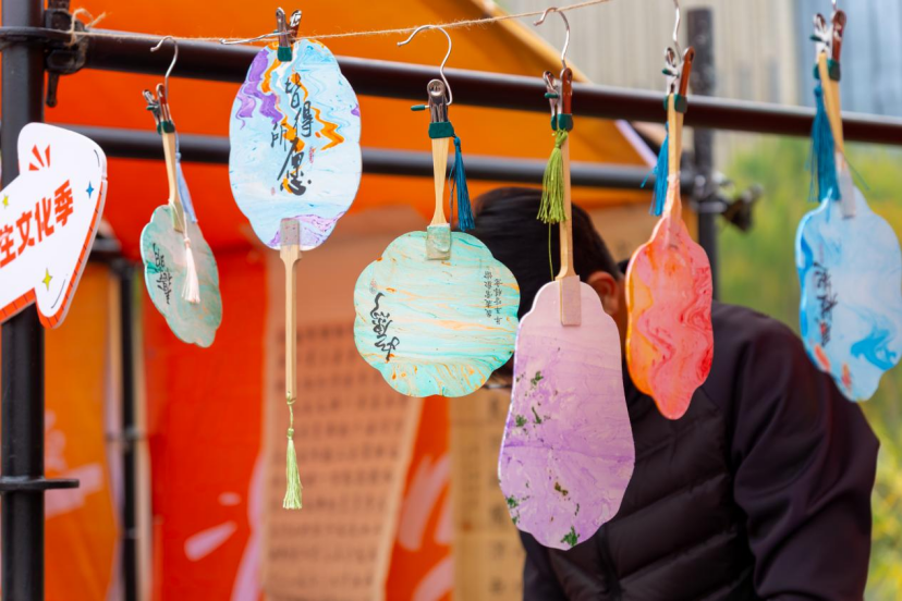 在这里,参观者可以在工作人员的指导下,亲自体验漆扇的制作流程,从选漆、调漆、试色到在水面绘图,每一步都充满了挑战与乐趣。一把把普通的扇子,在大家的巧手下逐渐变得生动而富有艺术感,成为了独一无二的纪念品。