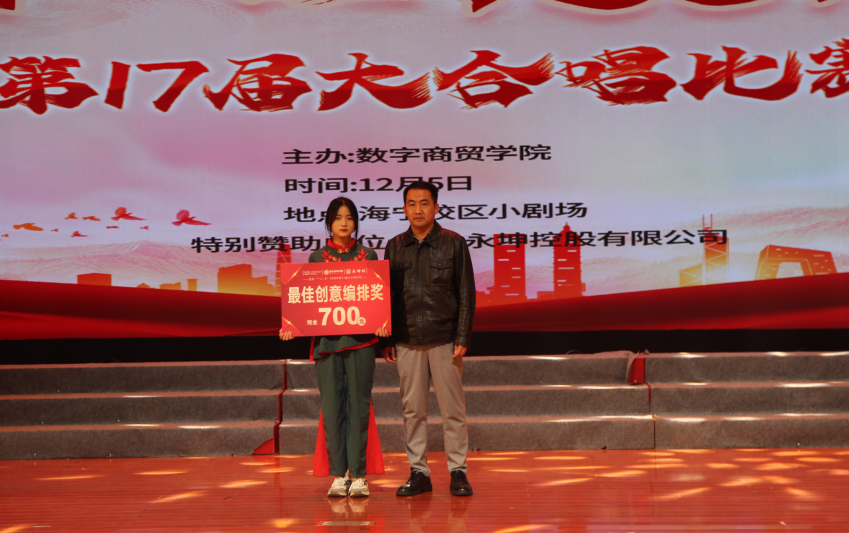 本次大合唱展现了数商学子朝气蓬勃、斗志昂扬的精神面貌,增强了同学们的集体荣誉感和团队协作精神。愿我们无论身处何方,遭遇何难,都让爱国的信念如灯塔般明亮,引领我们穿越风雨,砥砺前行,用实际行动续写属于我们这一代的壮丽爱国篇章。数字商贸学院“永坤杯”纪念“一二·九”89周年暨第十七届大合唱比赛圆满结束。