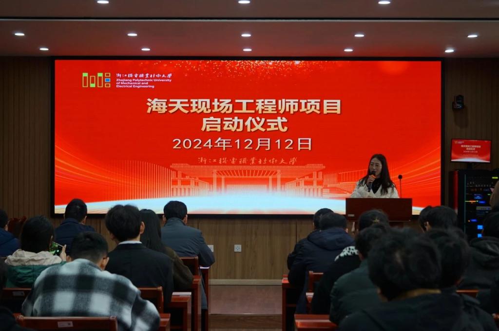12月12日下午,海天现场工程师项目班正式启动。此次启动仪式汇聚了众多领导、嘉宾、教师及学生代表。海天塑机集团有限公司海天大学校长陈兴、校长助理黄江淮、人力资源管理部经理郑巧玲,浙江机电职业技术大学自动化学院党总支书记陈罡、副院长王耀军等共同出席仪式。