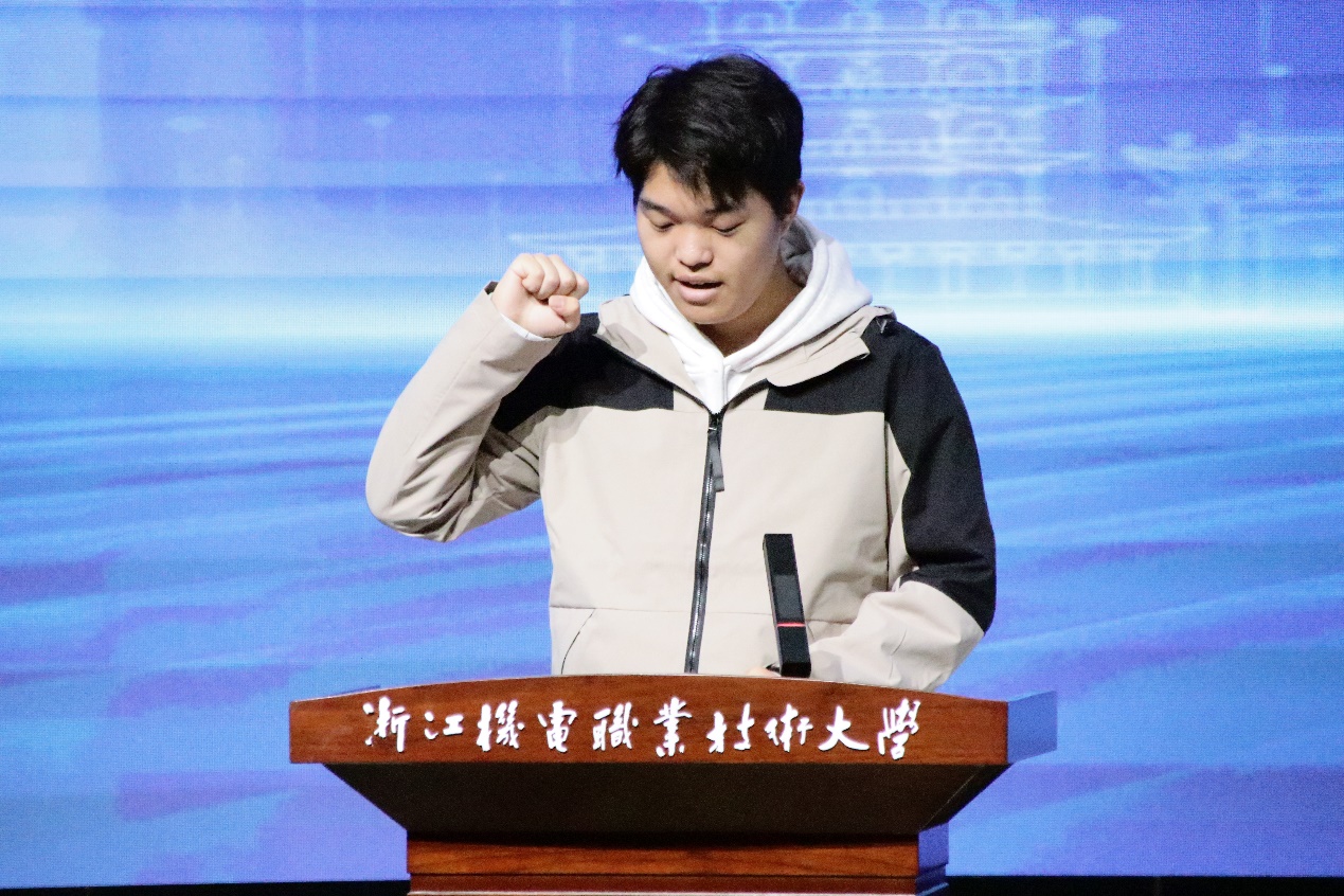 在“海克斯康杯“开幕式环节,浙江机电职业技术大学智能制造学院院长程方启、裁判员代表张岳老师及参赛选手代表李基辉同学先后致辞和宣誓,象征着比赛的正式启幕。