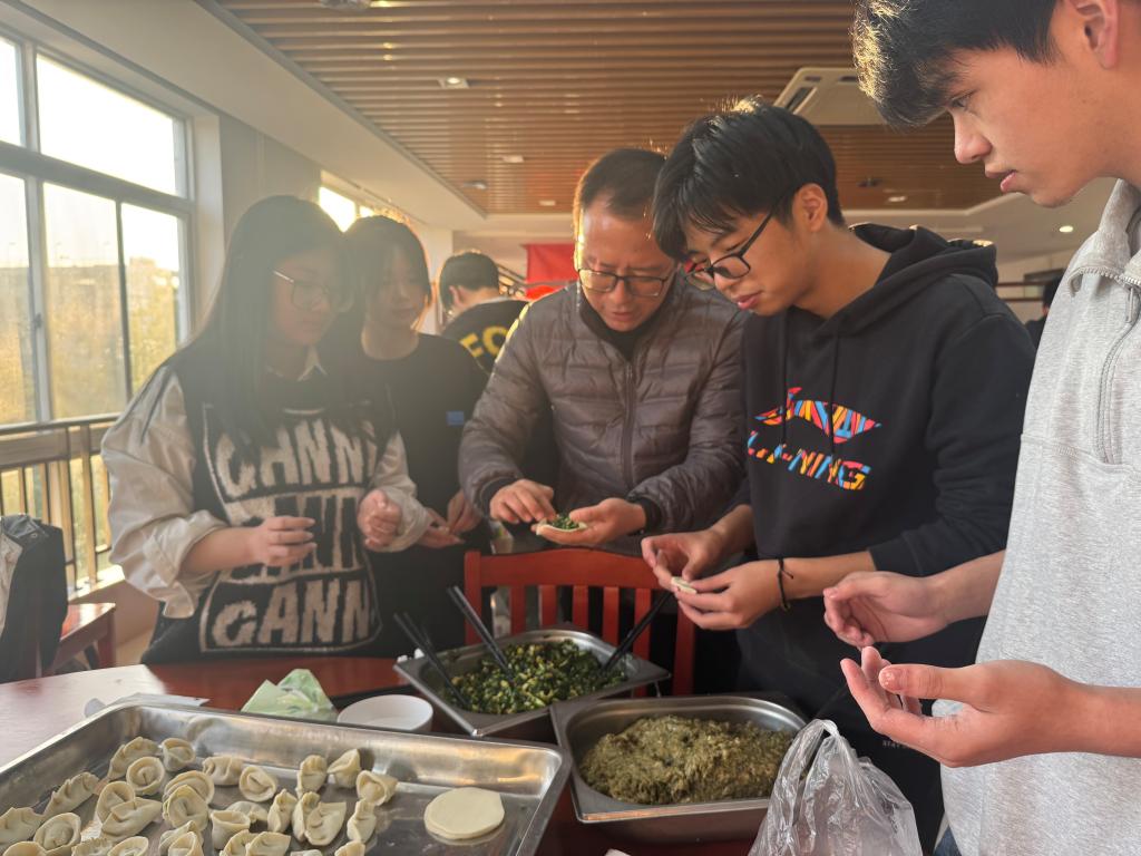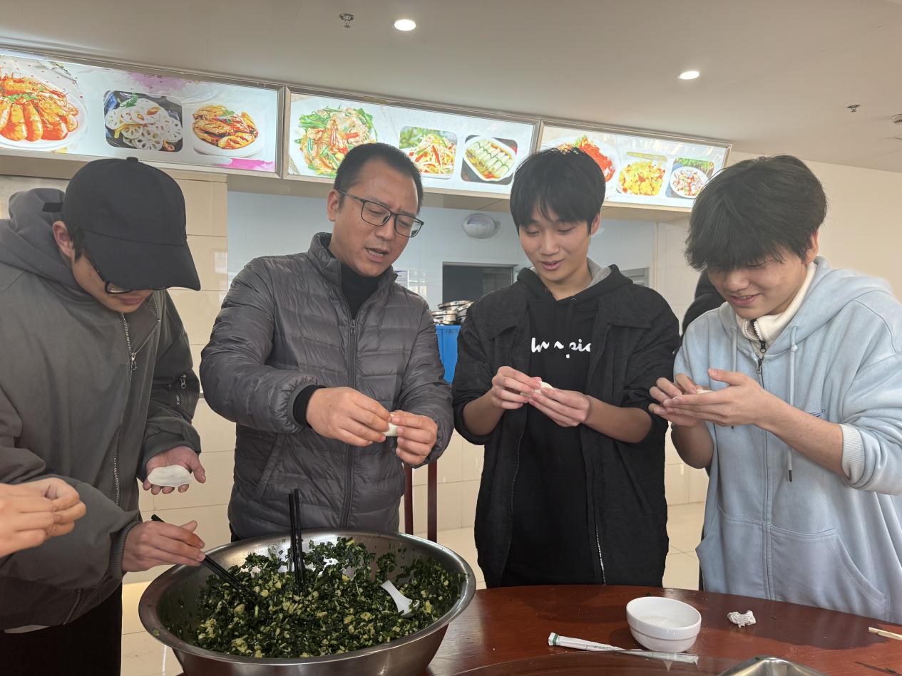 辅导员们也加入其中,与同学们一边包饺子,一边拉家常,询问大家的学习和生活状况,耐心倾听他们的心声。符书记也亲自上手,指导同学们包出了一个个漂亮的饺子。
