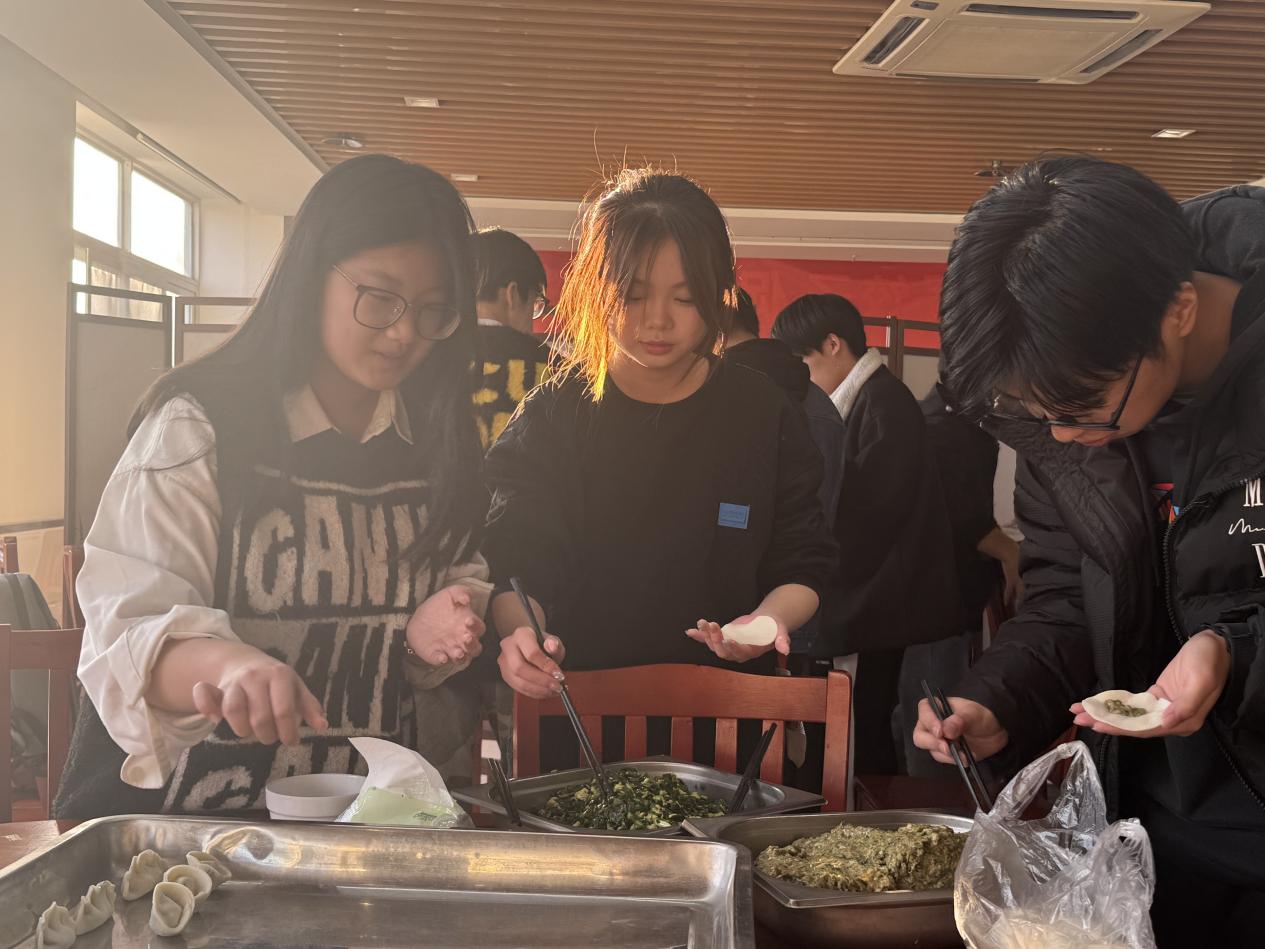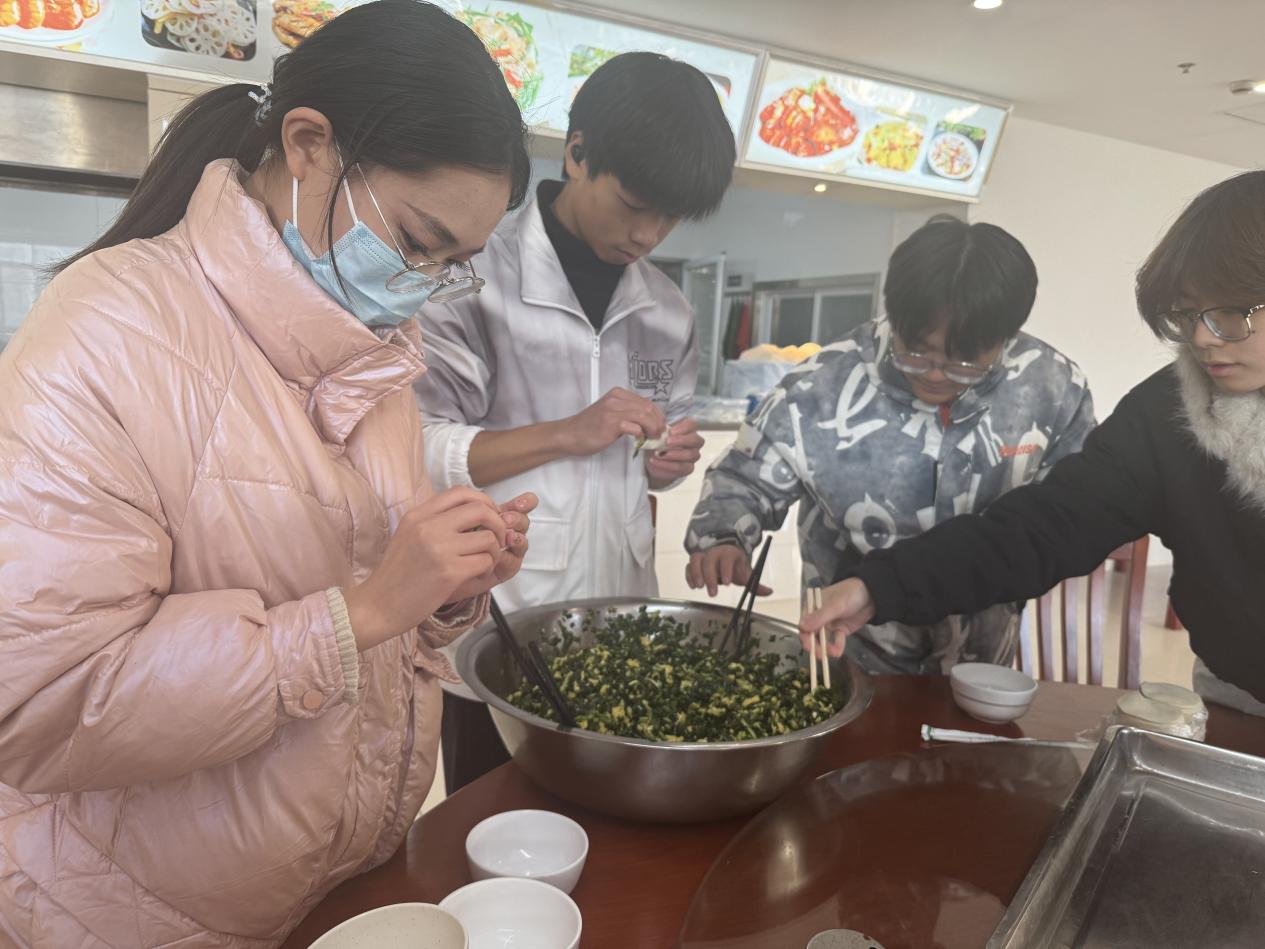 活动现场气氛热烈而欢快,同学们围在桌旁,纷纷动手包起了饺子。有的同学手法娴熟,饺子包得整齐漂亮;有的同学则是新手,边学边包,时不时发出一阵阵笑声。有的饺子小巧玲珑,有的饺子鼓鼓囊囊,还有“创意派”同学包出了爱心形状、元宝形状的饺子,给大家带来了不少欢乐。
