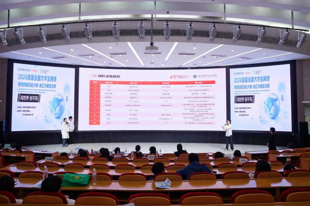 12月24日,由商务部中国国际电子商务中心主办,阿里巴巴国际站与浙江机电职业技术大学联合承办的2024首届全国大学生跨境电商创新创业大赛浙江分赛区决赛在浙机电大滨江校区顺利举办。大赛以“闯世界 创不同”为主题,吸引了浙江省28所高校的153支队伍近800名师生热情参与,经过激烈的初赛角逐、复赛比拼,来自浙江省6所高校的12支队伍晋级分赛区答辩,并精选出7支优秀队伍站上了本次现场展示的决赛舞台。
