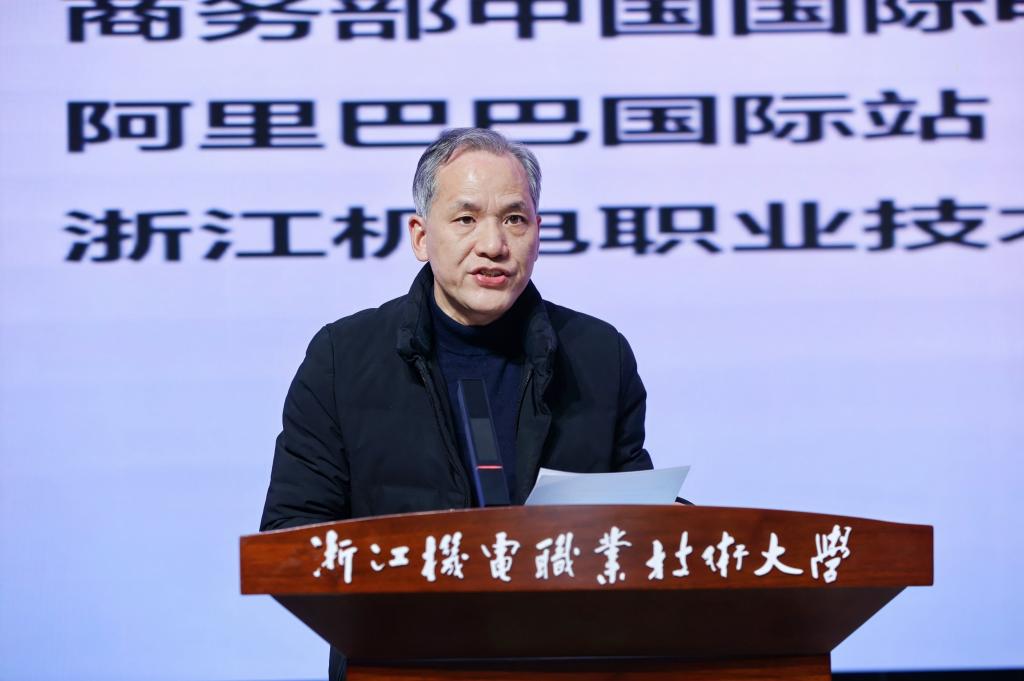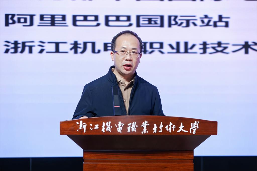 周增逵在致辞中介绍了学校悠久的办学历史及其对地方经济建设所发挥的卓越贡献,强调了学校致力于培养制造业及制造服务业技能技术人才的使命。他提到,学校与阿里巴巴建立了深度产教融合的合作关系,共同推进数字商贸学院、人才基地等项目的建设,为跨境电商行业的高质量发展贡献力量。