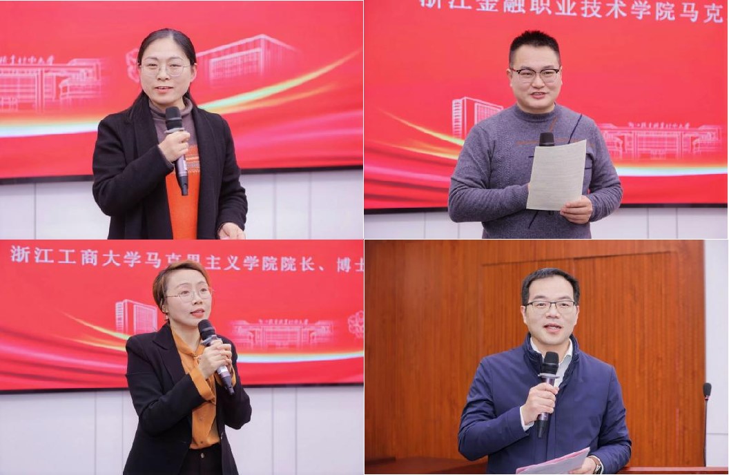 示范展示环节,教育部第三届全国高校思政课教学展示优秀获奖教师赵聪聪、王丽娟、王梓君分别以《用“硬科技”增添改革“含绿量》《中国式现代化的中国特色》《建设具有强大凝聚力和引领力的社会主义意识形态》为题作教学示范精彩展示;浙江机电职业技术大学马克思主义学院教师王平平从“一馆三体验”“一馆三融入”的层面就学校筑牢“红色根脉”主题教育实践基地如何赋能“新思想概论”课程教学设计作了展示汇报。