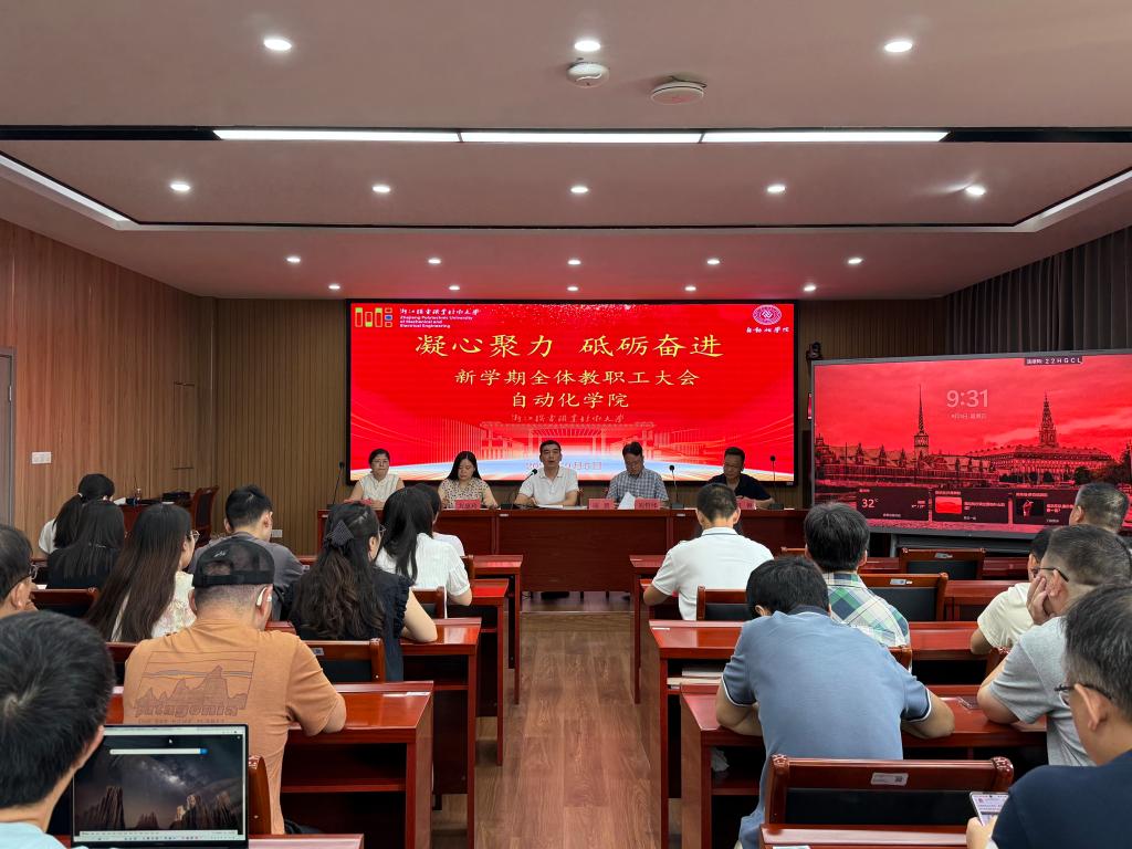 为进一步统一思想、明确方向、凝聚力量,确保新学期各项工作有序推进,9月5日上午自动化学院召开2025-2026学年第一学期新学期全体教职工大会。学院新任领导班子及全体教职工参会,会议由自动化学院院长陈罡主持。