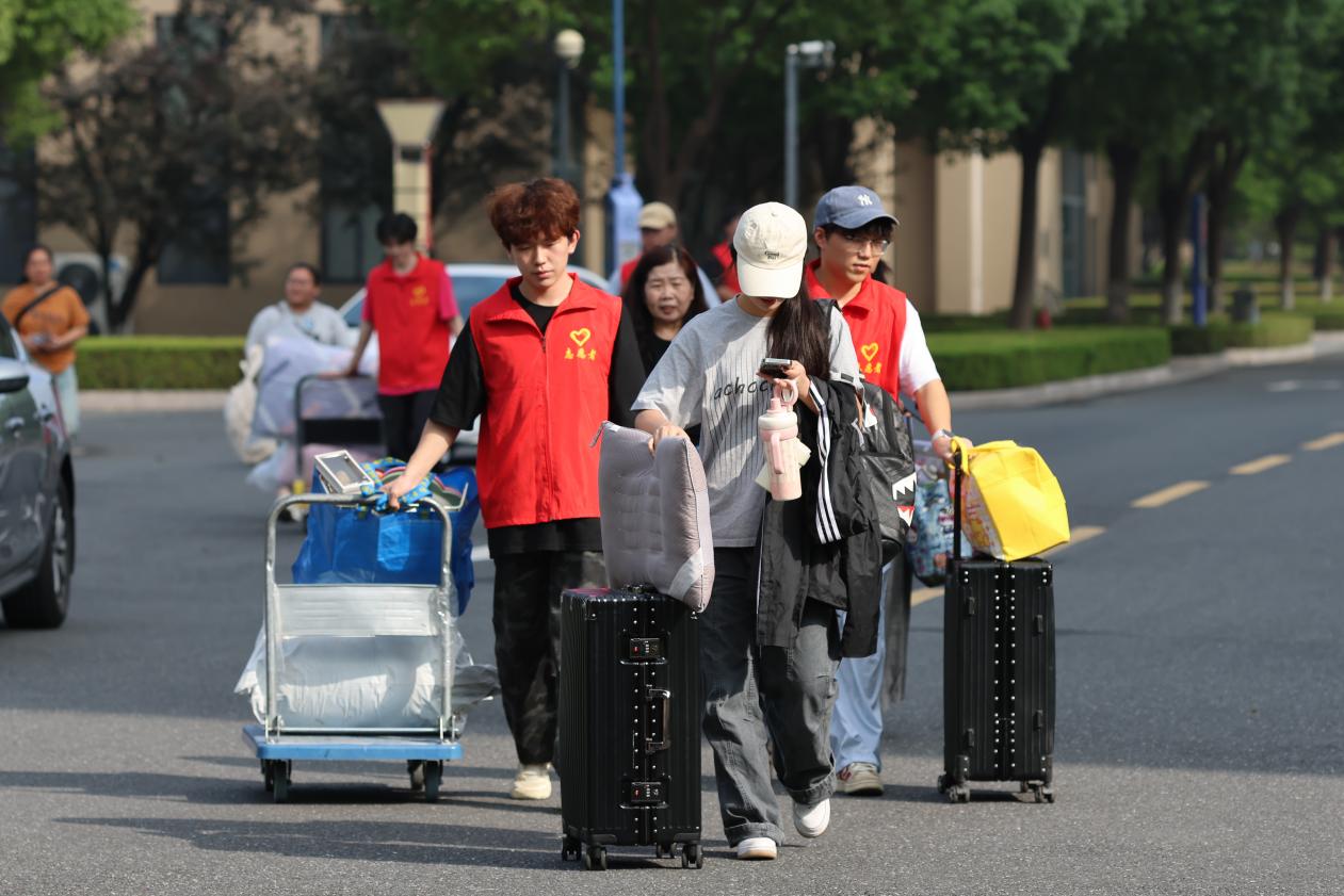 新生报到当天,自动化学院院长陈罡、党委书记刘哲纬、党委副书记方惠玲、副院长吕俊、副院长虞佳佳,连同学院辅导员与新生班主任,早早守候在迎新现场,与迎新志愿者一道,欢迎新生的到来。一抹抹鲜亮的“志愿红”穿梭在海宁校区的各个角落,各板块工作人员按照流程为新生们办理入学手续,提供咨询,解答新生的各类问题,尽其所能为同学们提供帮助。公寓志愿者则早早地等在寝室楼下,为新生搬运行李、提供路线指引,帮助他们顺利入住寝室。在各工作人员及志愿者们的合作下,一批又一批新生顺利完成报到,学院细致周到的服务使同学们真切地感受到来自学院的温暖和来自老师、学长们的关怀,信心满满地迈向大学生活的新篇章。