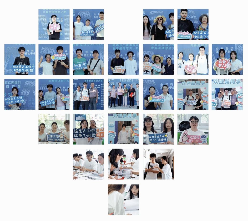 学院精心设置了学院简介喷绘,独具学科特色的展板、趣味合照框以及富含“AI”元素的手持标语,为每一位新生营造出满满的归属感与仪式感。打卡区前,小萌“芯”们兴奋地举起纪念手牌,灿烂的笑容在镜头前绽放,定格下与人工智能学院的第一个美好“芯”瞬间。