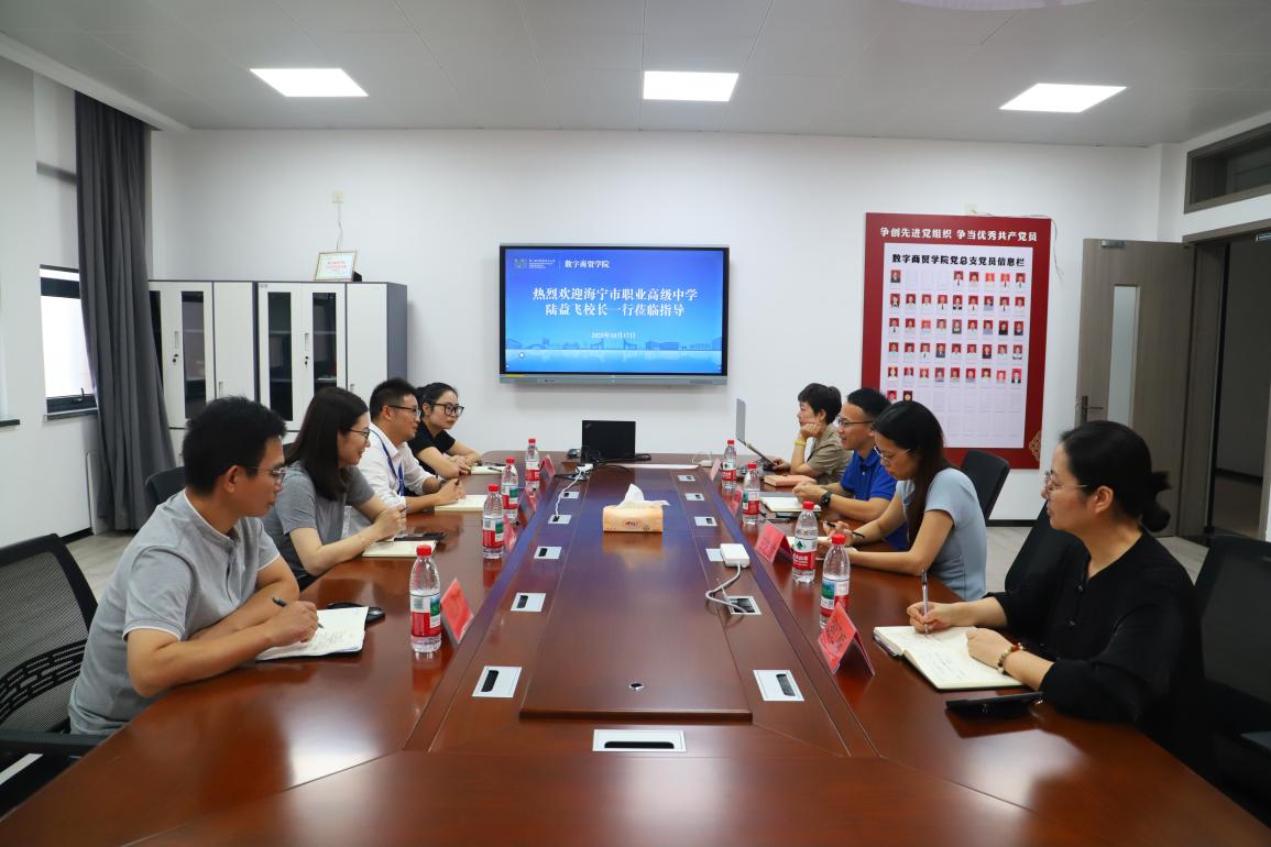 为深化校际合作,推进区域一体化人才培养模式,10月17日上午,海宁市职业高级中学党委副书记、校长陆益飞一行莅临我校海宁校区数字商贸学院参观交流。数字商贸学院院长姜洋、副院长王艺洁、跨境电商专业教研室主任郑荷芬教授、教学办主管路红梅热情接待并参与座谈。