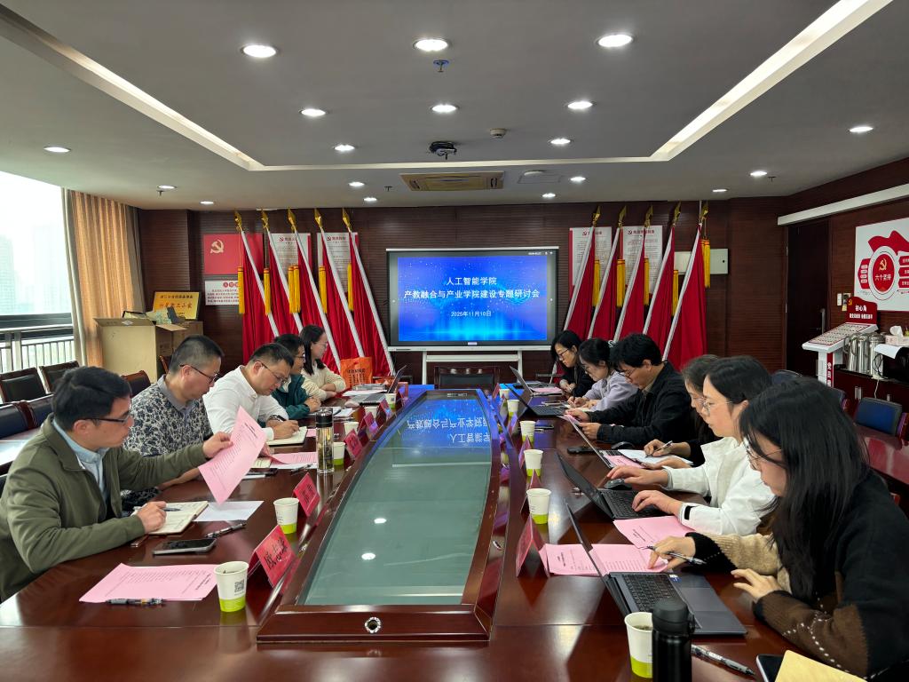 为深入贯彻落实学校关于深化产教融合、推动产业学院高质量发展的部署要求,11月10日下午,人工智能学院召开产教融合与产业学院建设专题研讨会。会议以“凝聚共识,汇聚合力,全面推进人工智能学院产教融合与产业学院高质量发展”为主题,旨在统一思想、明确方向,制定切实可行的行动计划。学院党委书记张荣路、院长卢成浪、副书记邵俊、副院长欧志球、张彩彩,以及各专业负责人、办公室主管等共同参会。产教融合处张伟应邀到会指导。