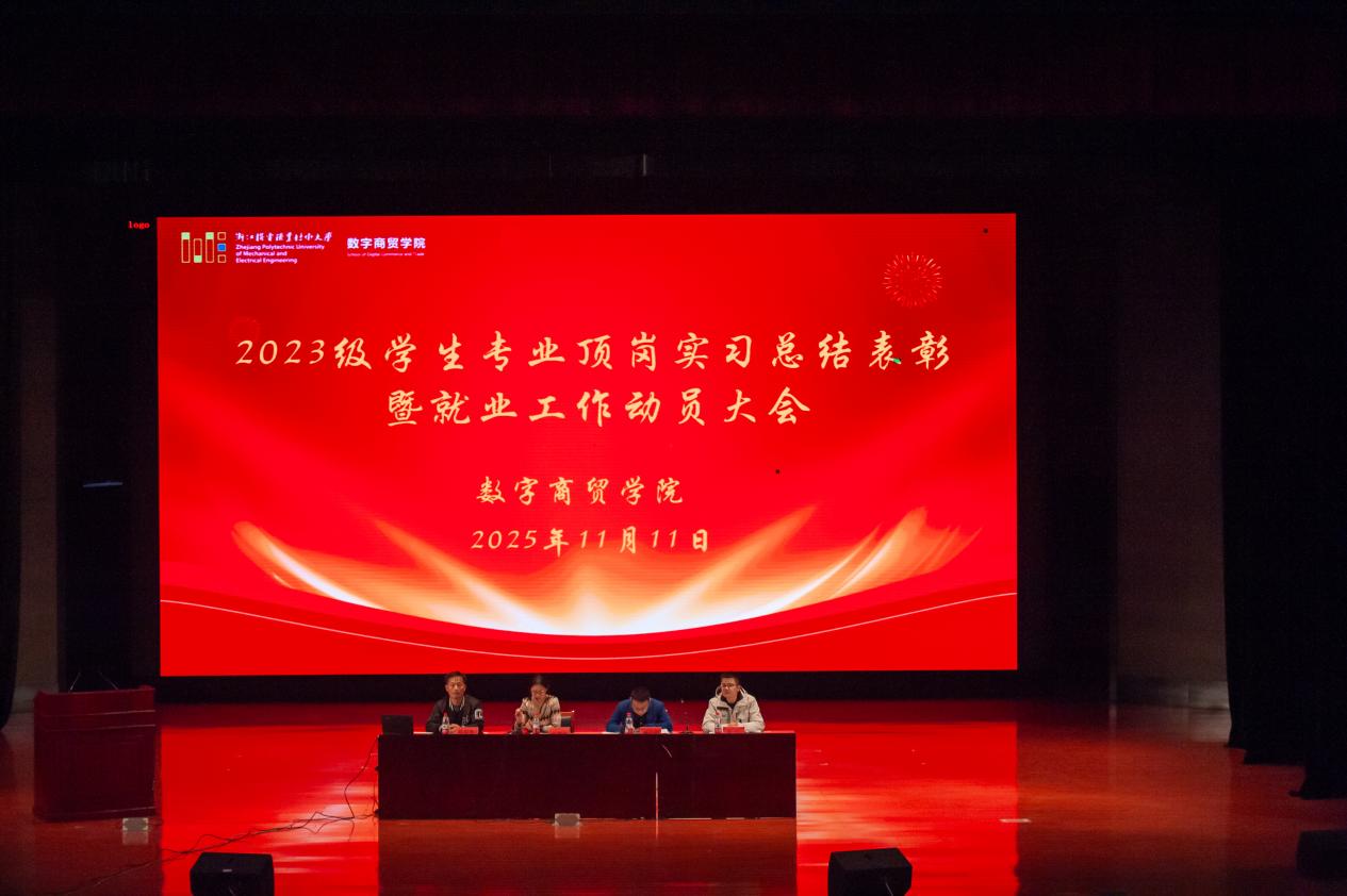 2025年11月11日,数字商贸学院隆重举行2025级学生顶岗实习总结表彰暨就业动员大会。学院领导、教师代表及2025级全体学生齐聚一堂,共同回顾实习收获,展望就业新征程。