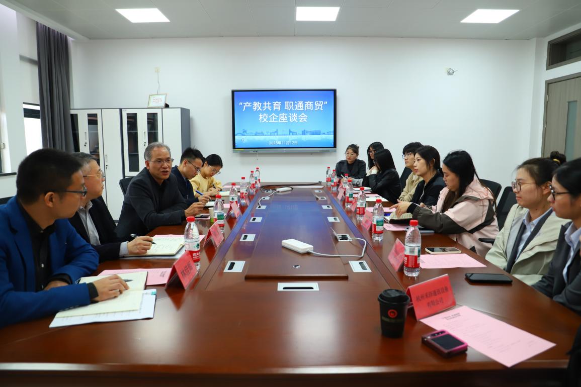 2025年11月12日下午,数字商贸学院抓住学校秋季校园招聘会的契机,在21号楼307会议室成功举办“产教共育 职通商贸”校企座谈会。会议旨在进一步深化产教融合,推动校企合作,共同培养高素质商贸类人才。周增逵副校长出席并讲话,数字商贸学院领导班子成员及相关负责人共同参会。