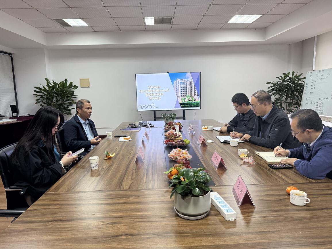 调研期间,程方启一行深入企业生产车间,实地察看智能生产线运行等核心生产场景,详细了解企业技术研发方向、产能规模及岗位设置情况。在座谈会上,校企双方围绕海外培训基地、人才培养、实习就业、产学研合作等议题展开深度交流。企业负责人结合行业发展趋势,提出“复合型技术人才需兼具扎实理论功底与实操能力”的培养需求,并希望与学院共建实训基地、联合开发课程。调研小组介绍了学院专业设备情况、专业建设、人才培养方案及毕业生就业情况,双方就共建海外培训基地、学生顶岗实习等合作模式达成初步共识并签署了合作协议。
