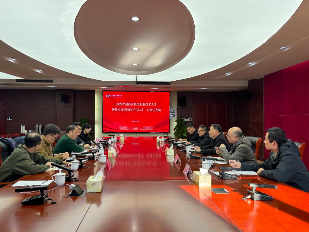 当日下午,调研团队赴南京交通职业技术学院继续交流。文爱民详细介绍了学校在专业建设方面的实践,特别是在城市轨道交通、汽车类专业建设等方向的政策把握、人才定位、课程认证与师资培养机制。马林才高度评价南京交院在专业布局与产业对接、“名师训练营”“青年教师培养营”等方面的做法,表示相关经验为我院结合浙江产业结构优化专业设置提供了有益借鉴。