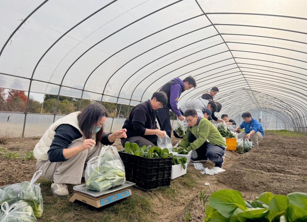 据悉,此次提供蔬菜的海宁校区南边小菜园于今年10月新开辟而成,位于学校大棚东侧闲置区域,占地面积约600平方米。后勤团队充分利用闲置空间,深耕细作、科学管护,全程采用生态种植模式,目前园内已成功培育出青菜、红菜苔、菠菜、萝卜、豌豆等多品种有机蔬菜,形成了丰富多样的种植格局。